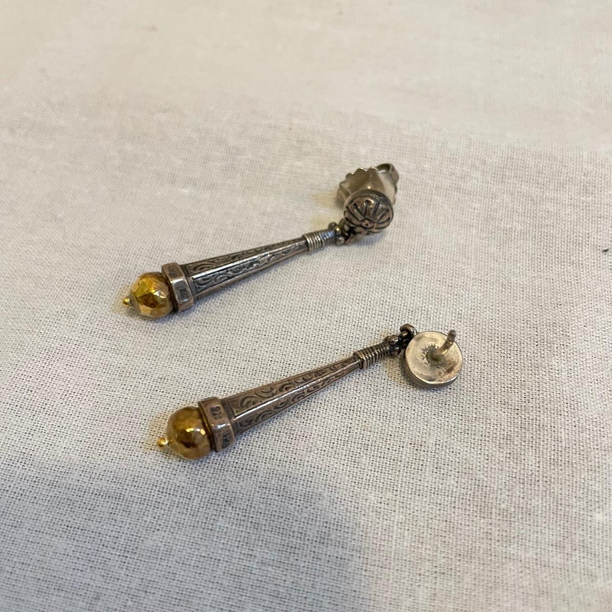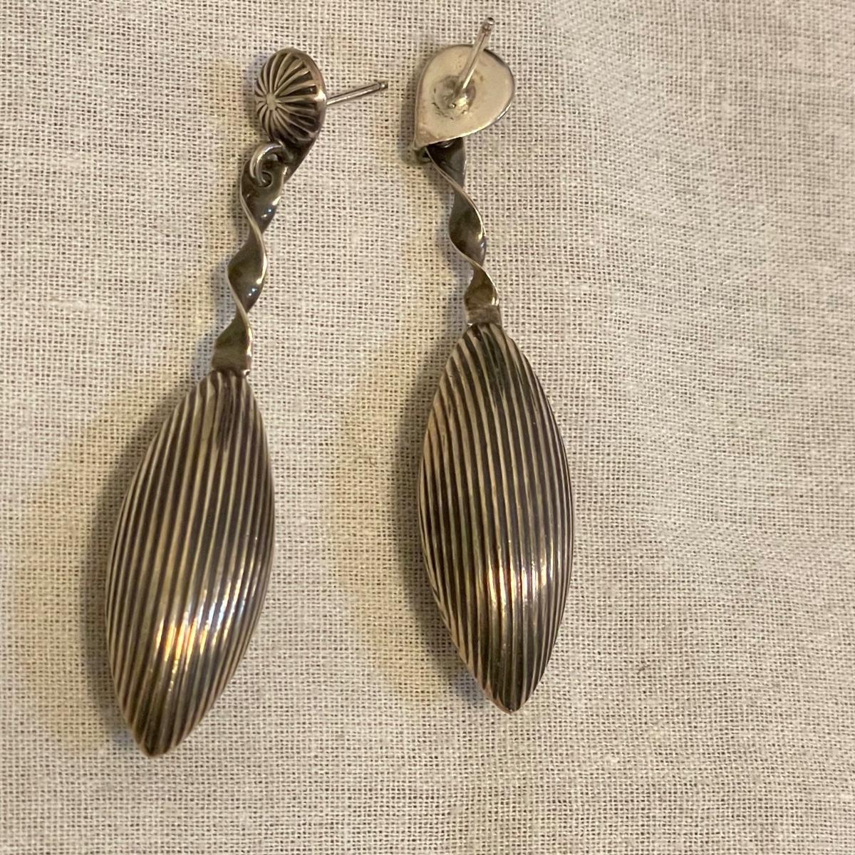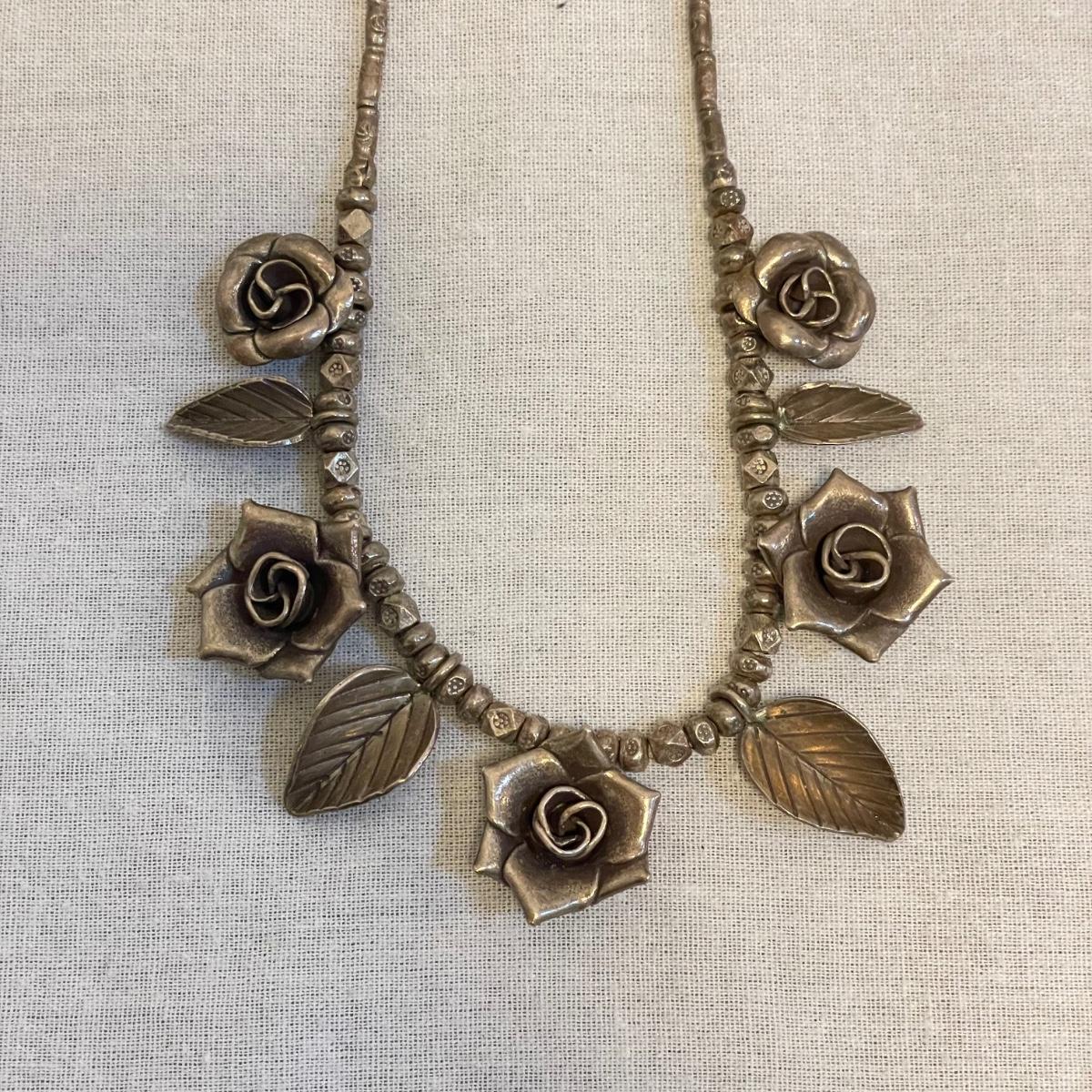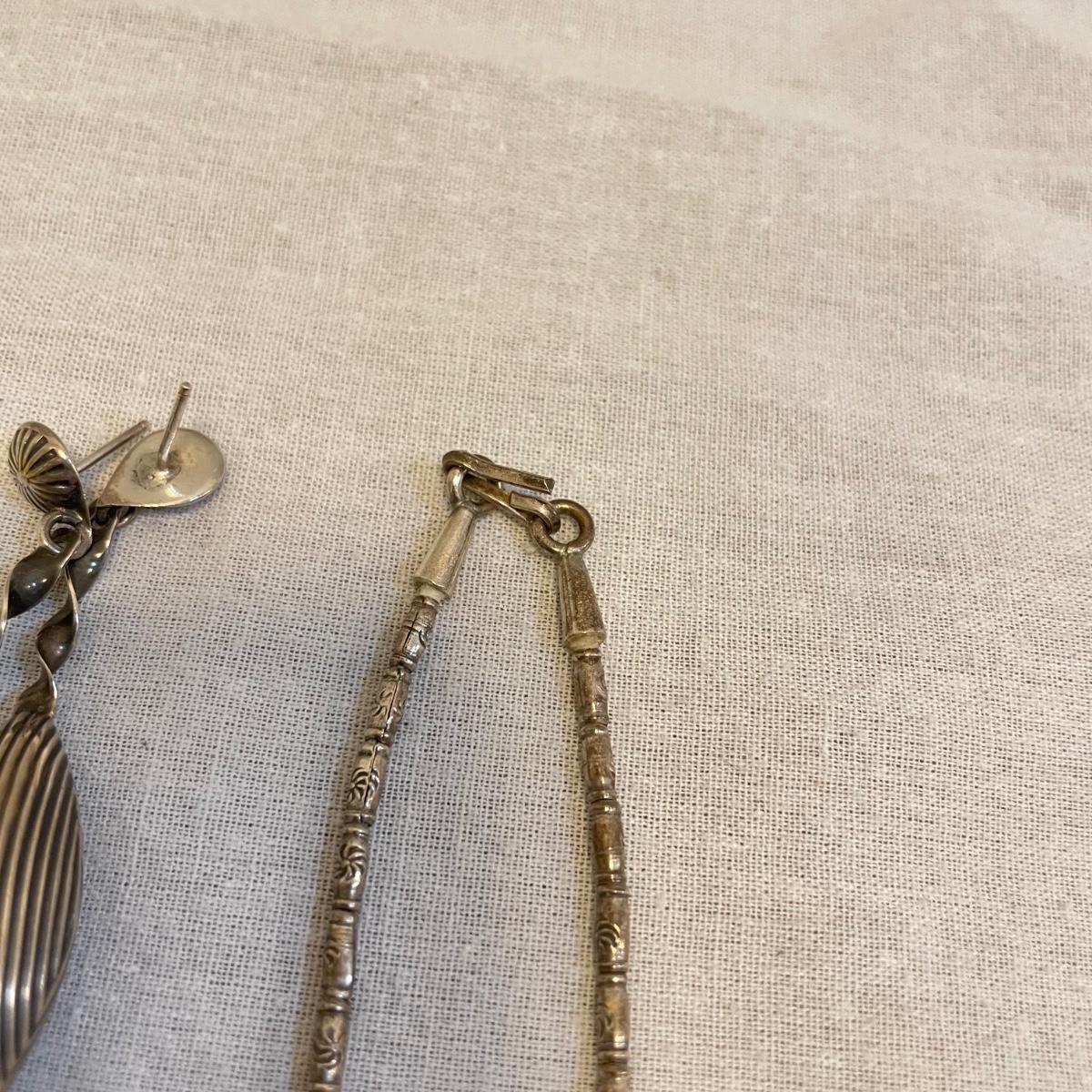 Three pairs of long silver dangle earrings for pierced ears, a rose necklace and petite pendant. Most items have a look of sterling, but the only known sterling marking is on the two-toned gold/silver colored pair. Earrings have two backs included. See photos for measurements. Shipping available. All sales are final. No returns or refunds. Please bid accordingly.