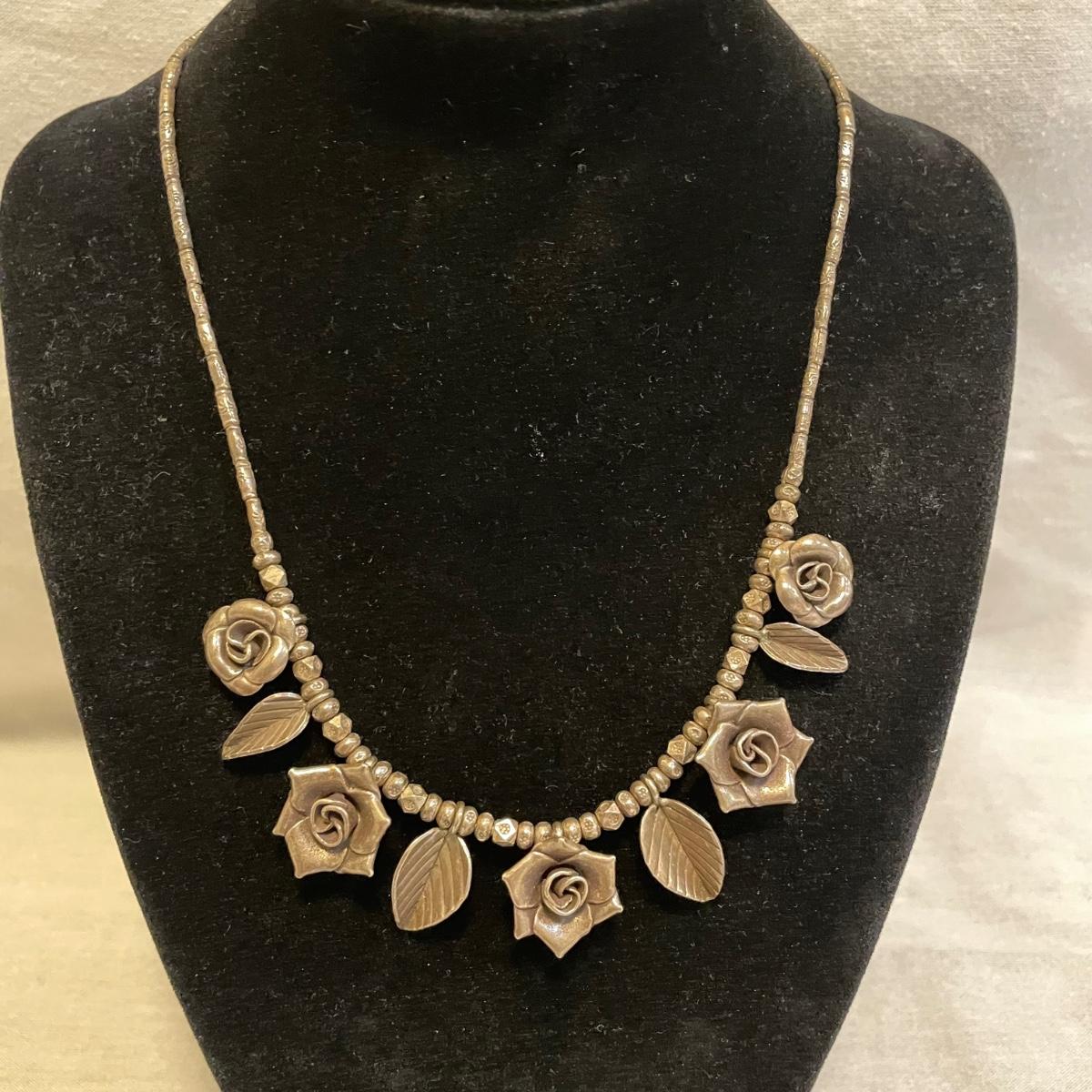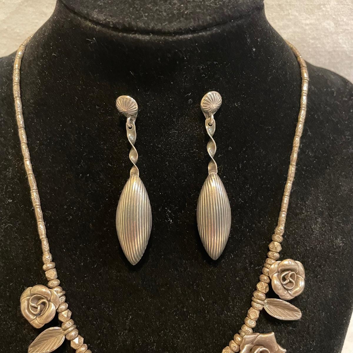 Silver Earrings & Rose Adorned Necklaces (K-SS)