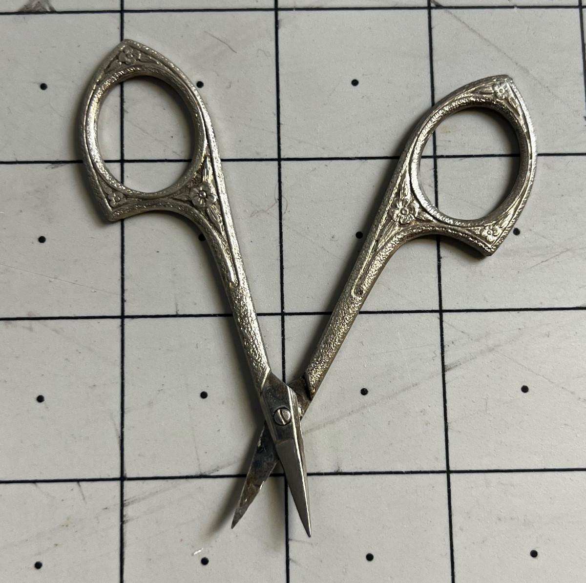 Silver Engraved Sewing Scissors; Fancy Art Nouveau Design