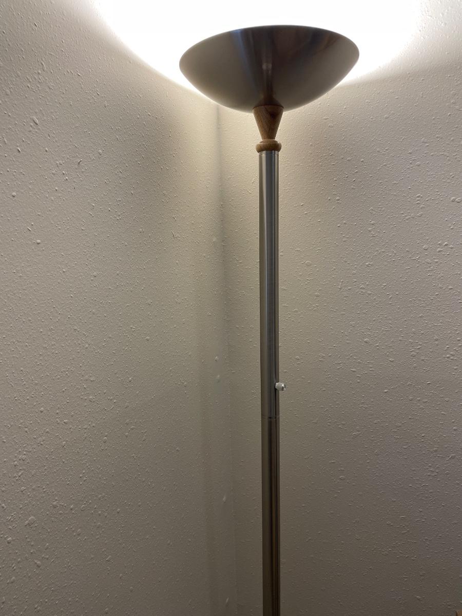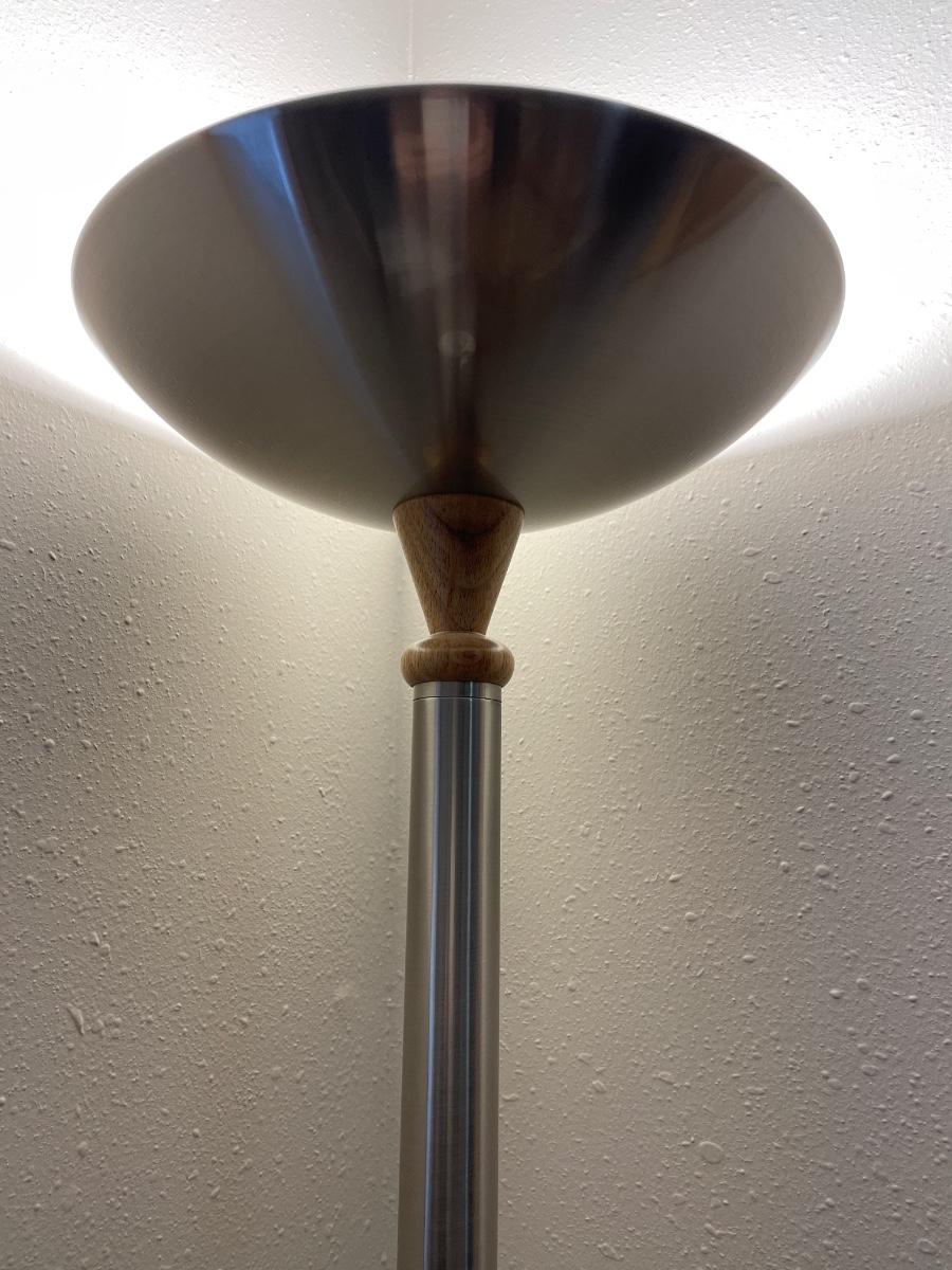 Silver floor lamp with wood accents