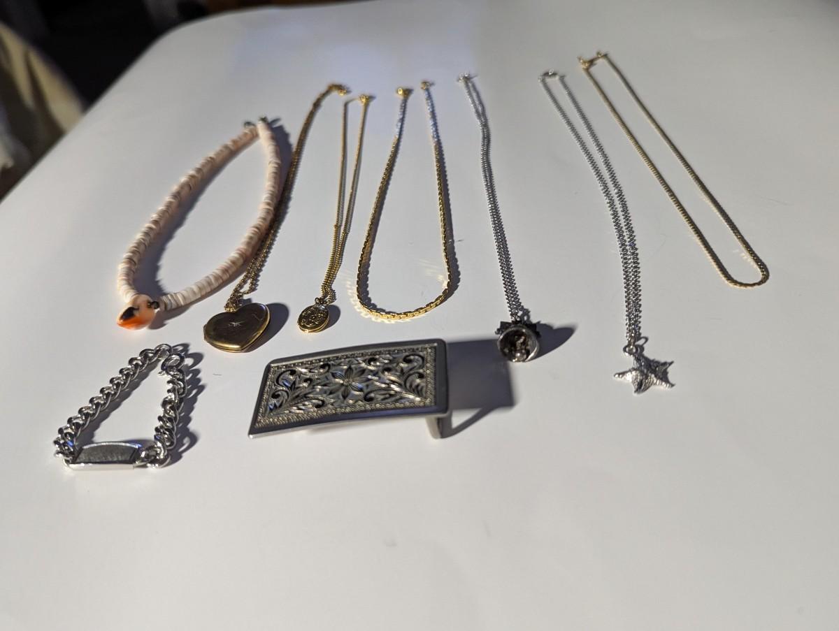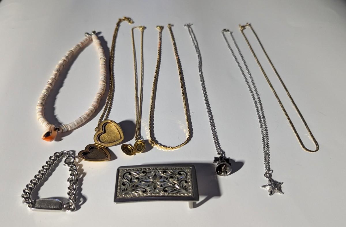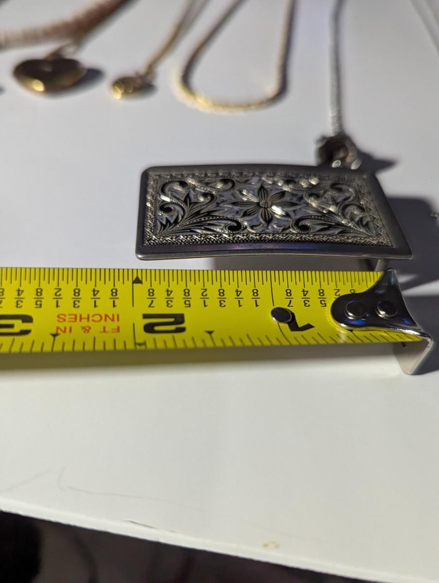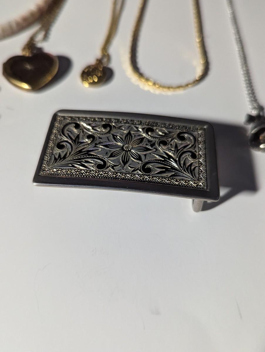 Silver Floral Engraved Vintage Belt Buckle Locket Necklaces Silver Star & Bell #15