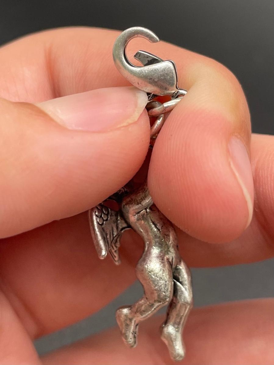 This angle charm is in great condition and has no noticeable damages. The part that clips onto a bracelet opens and closes perfectly.
