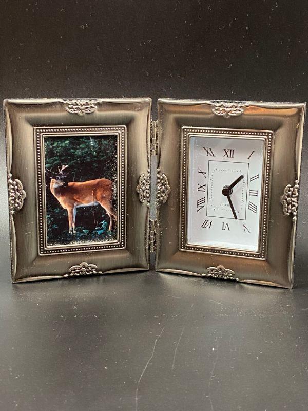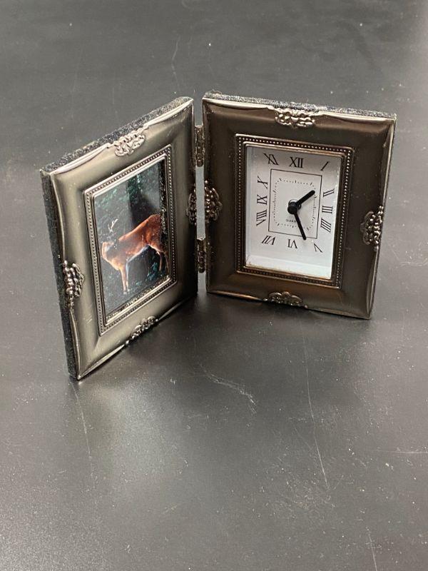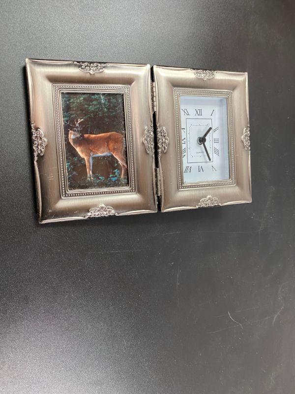 SILVER FOLDABLE PICTURE FRAME AND CLOCK SET 2 X 4 INCHES