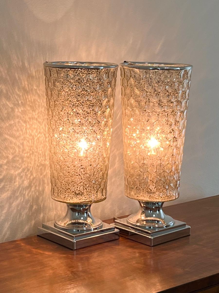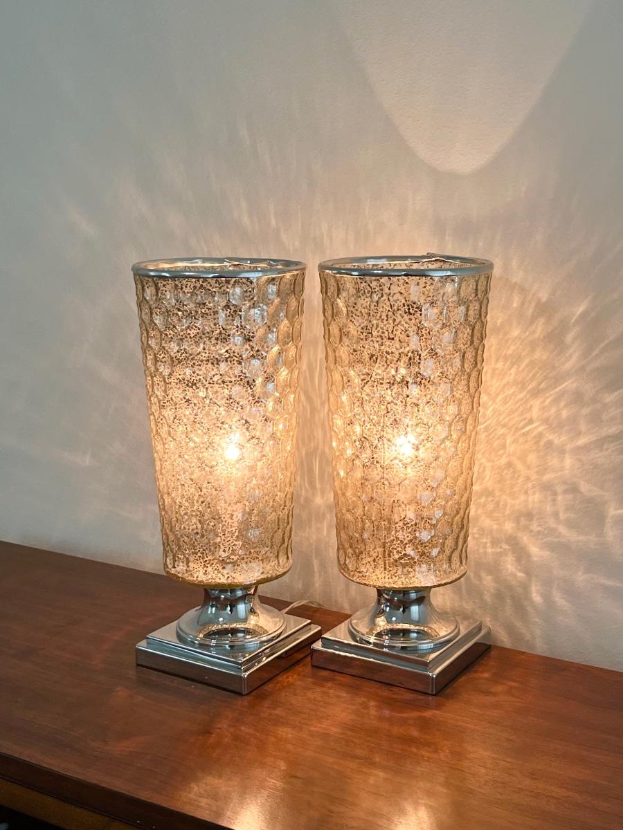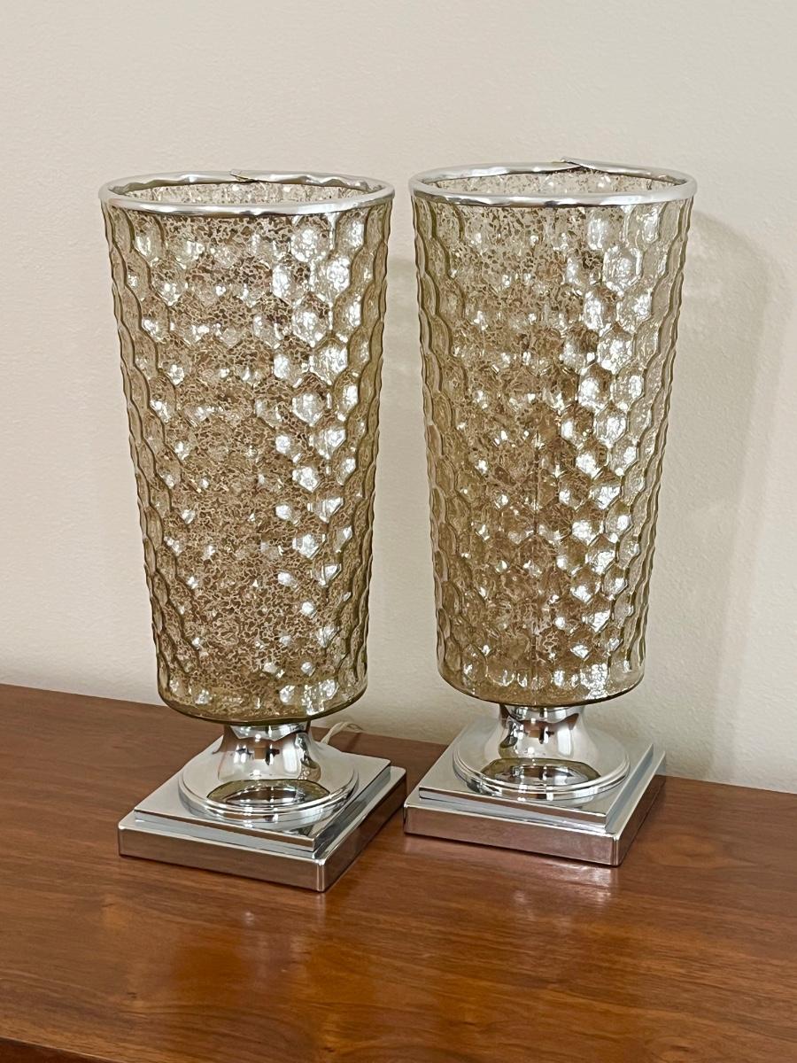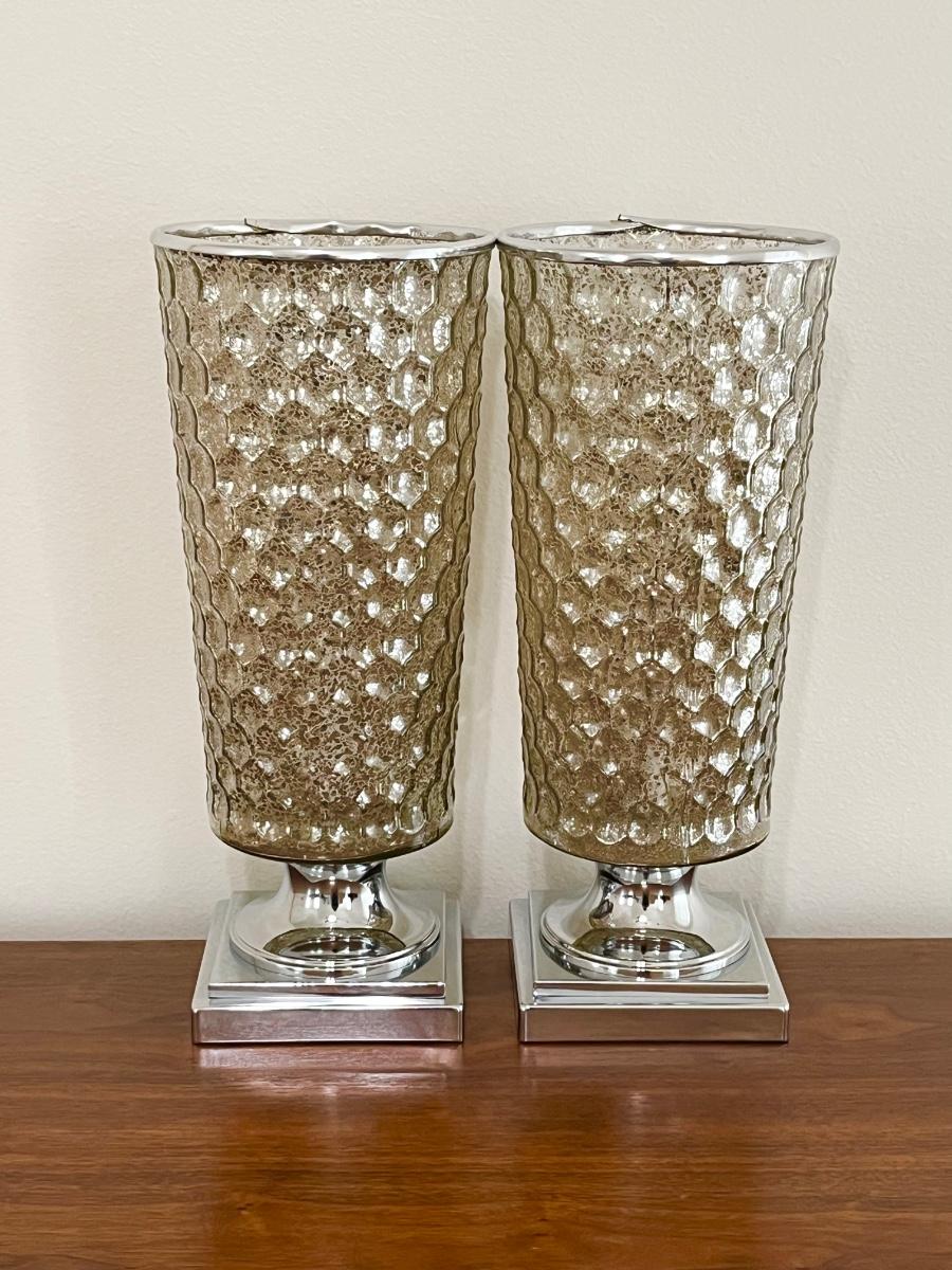 Silver Glass Embossed Trellis Pattern Table Lamps ~ Set Of Two (2)