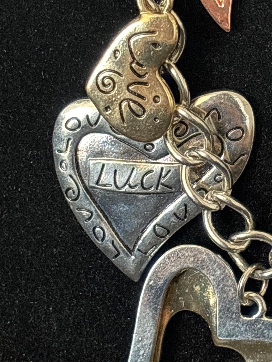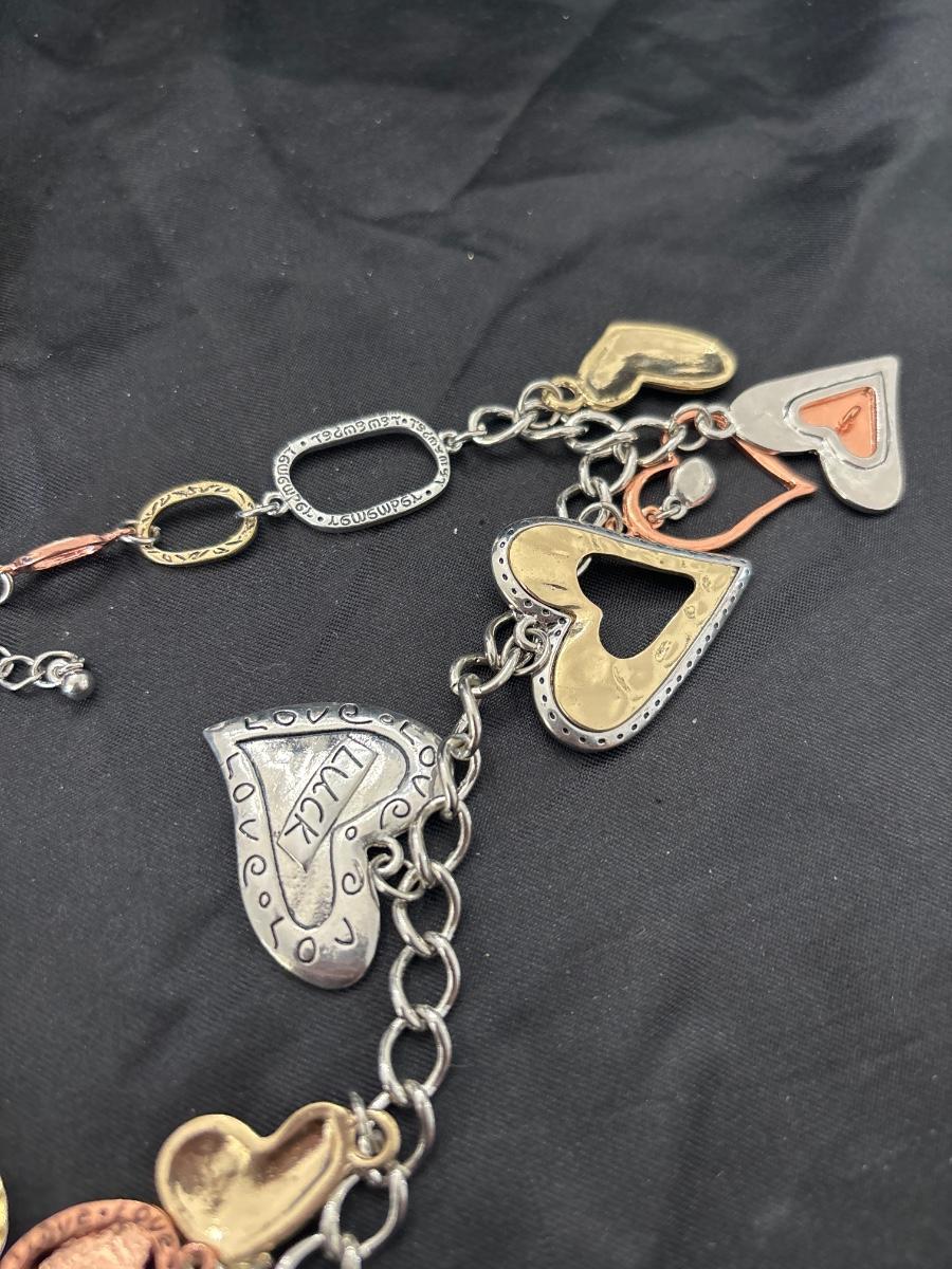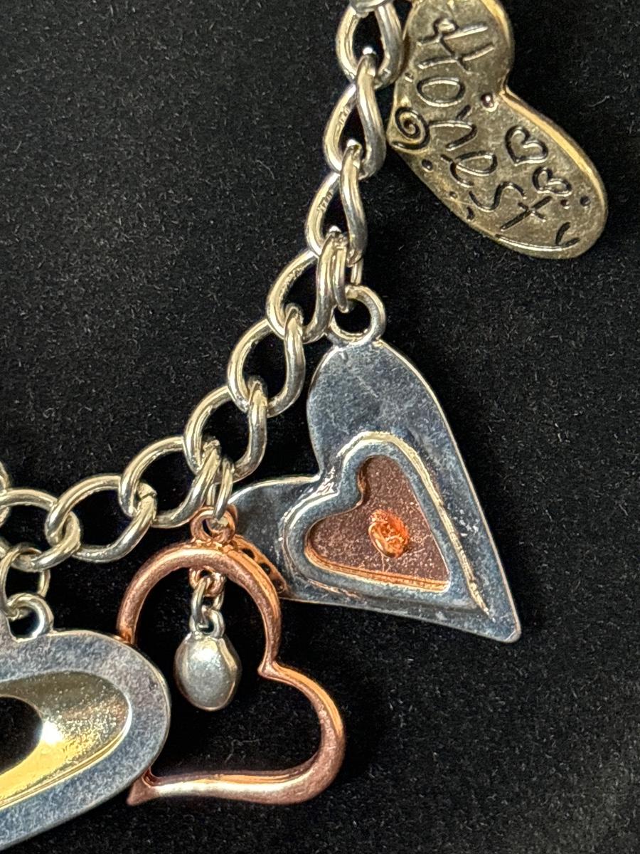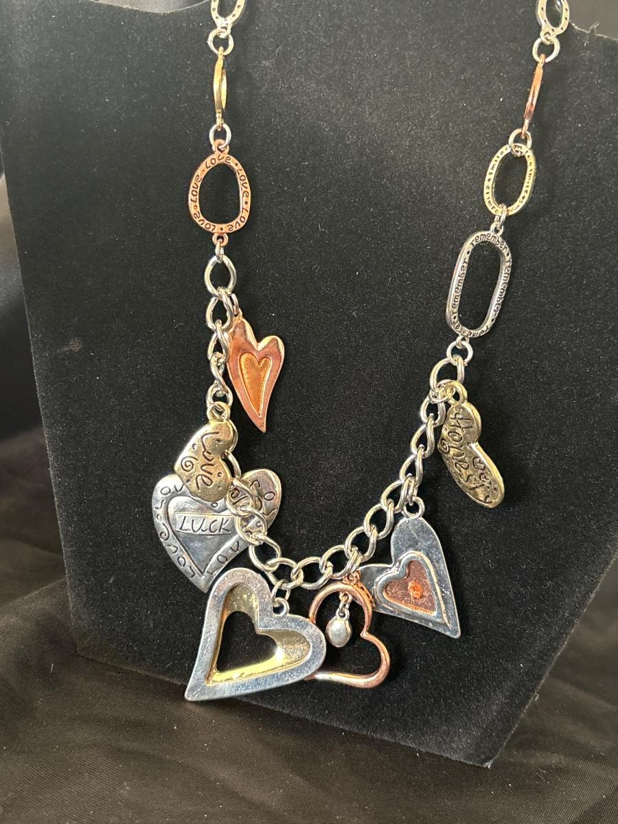 Silver, gold, and bronze toned charmed necklace