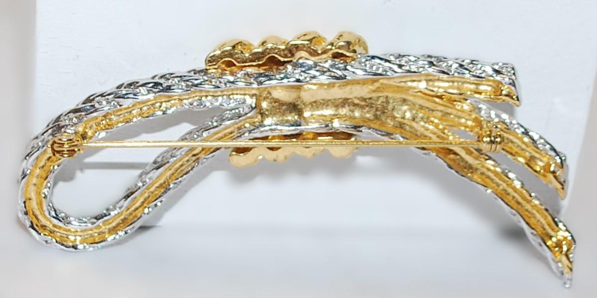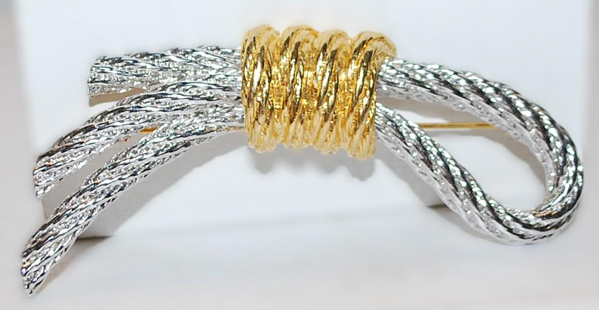 Silver & Gold Colored "BOUND ROPE" BROOCH (3¼" x 1½") on a Gold Tone Setting
