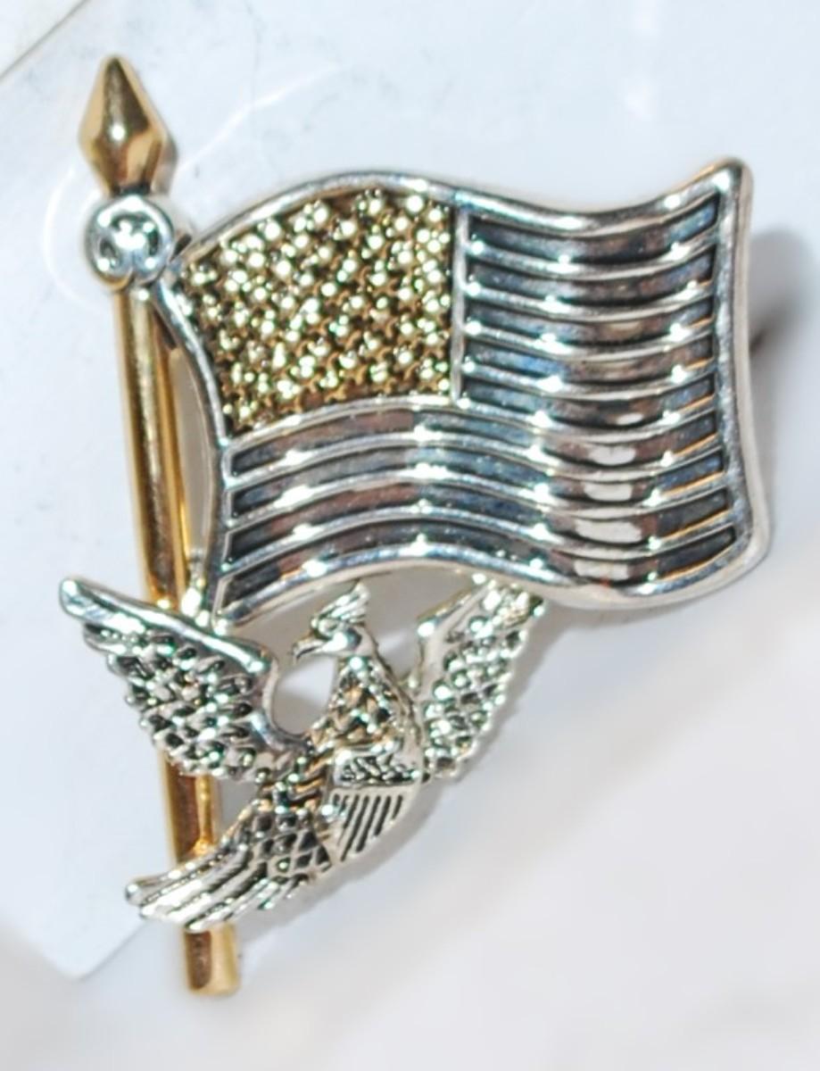 Silver & Gold Colored FLAG PENDANT/BROOCH COMBO (2¼" x 1½") -- Marked "Best" -- on a Silver Tone Setting