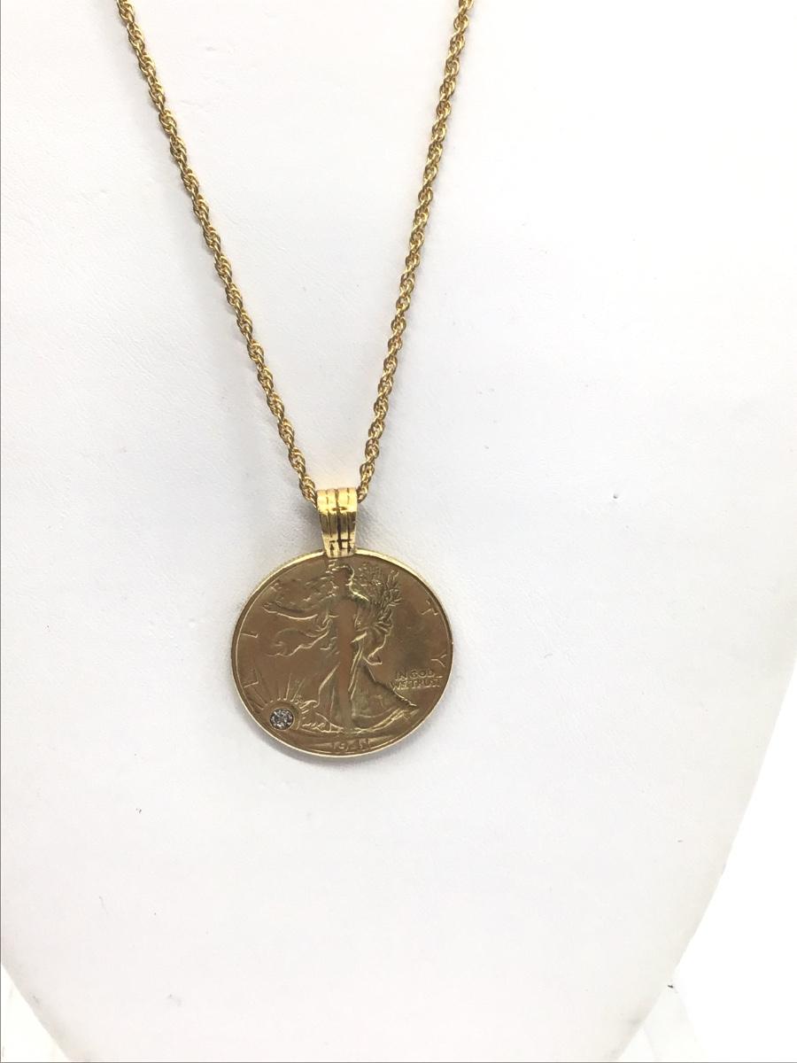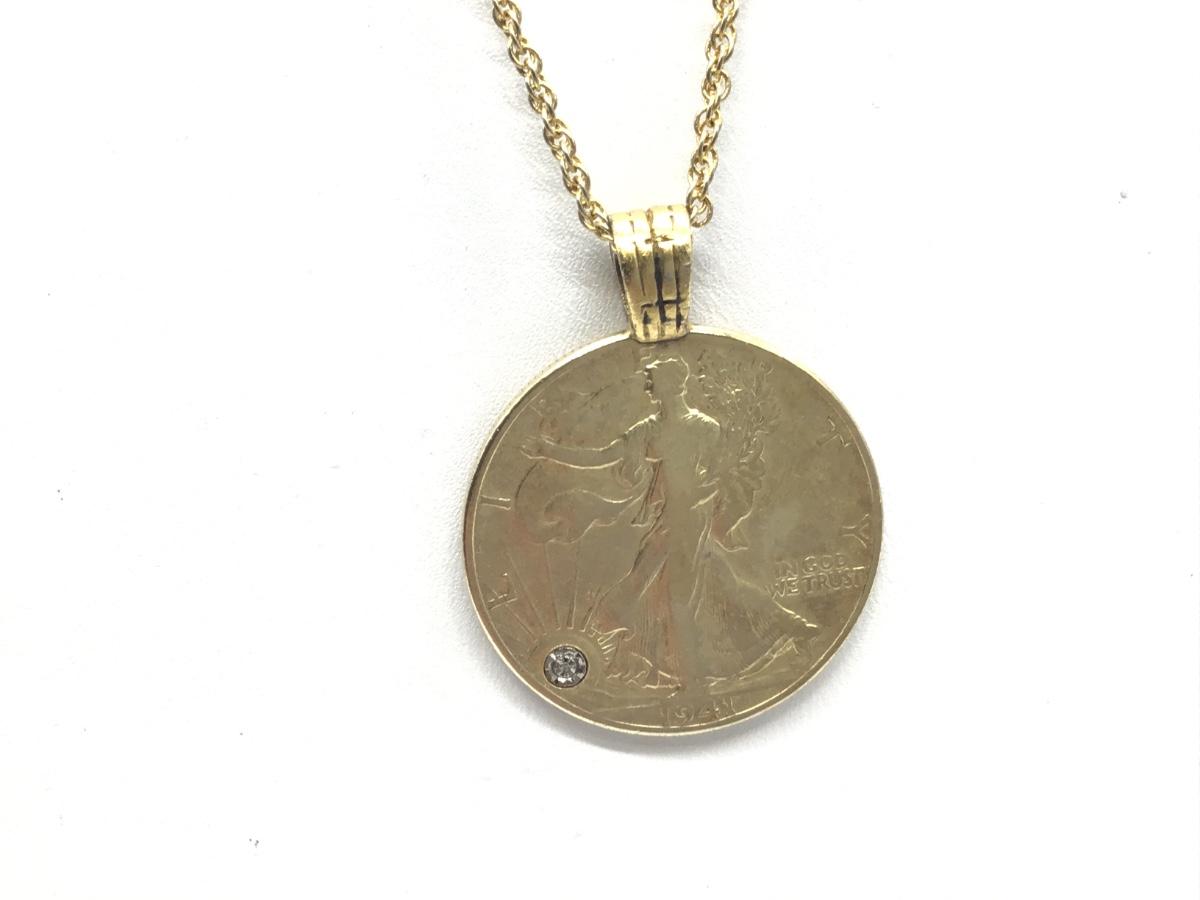 Silver Gold Layered  Walking Liberty 1941 Coin Pendant with Diamond Chip