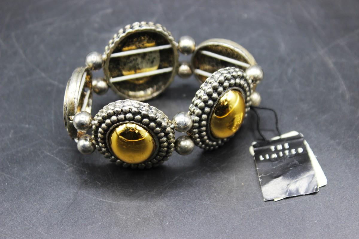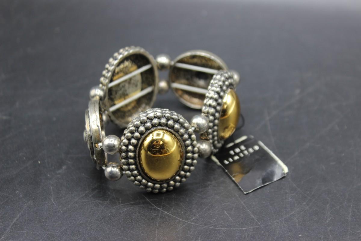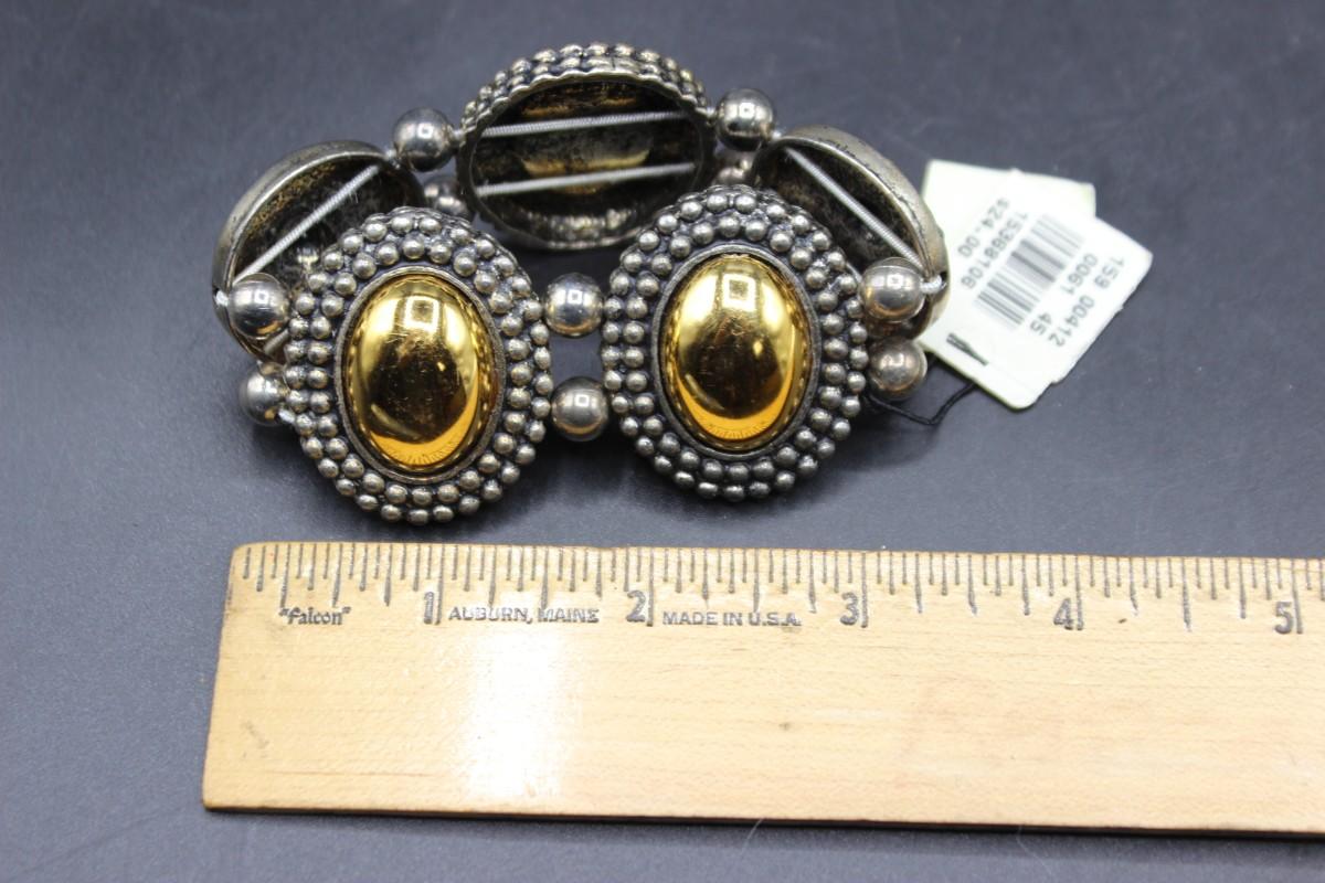 Silver & Gold Tone Stretch Link Fashion Bracelet. Original hang tag still attached.
