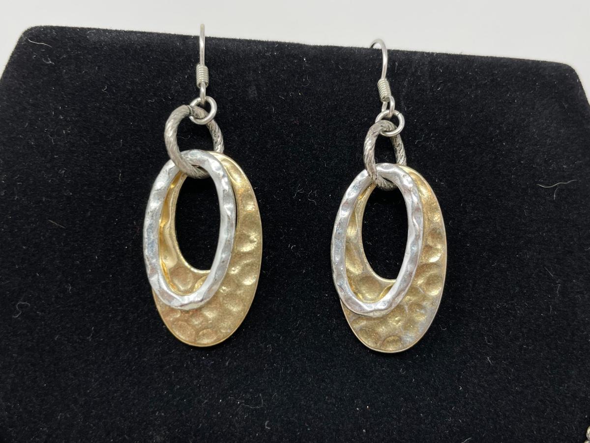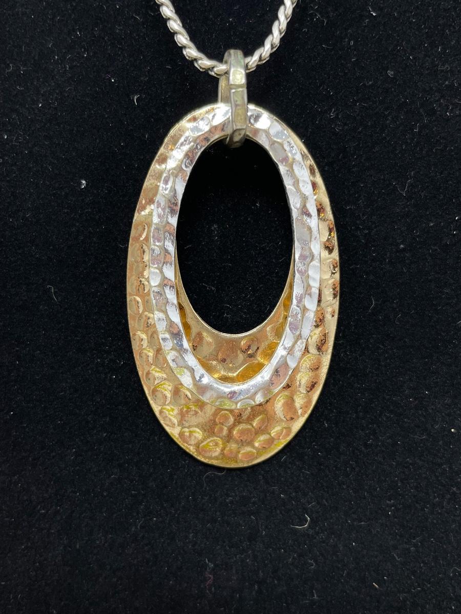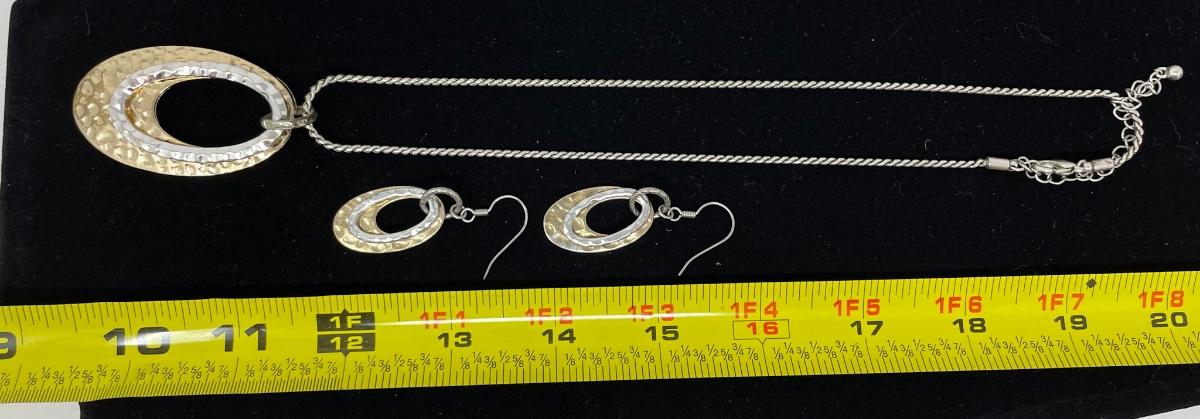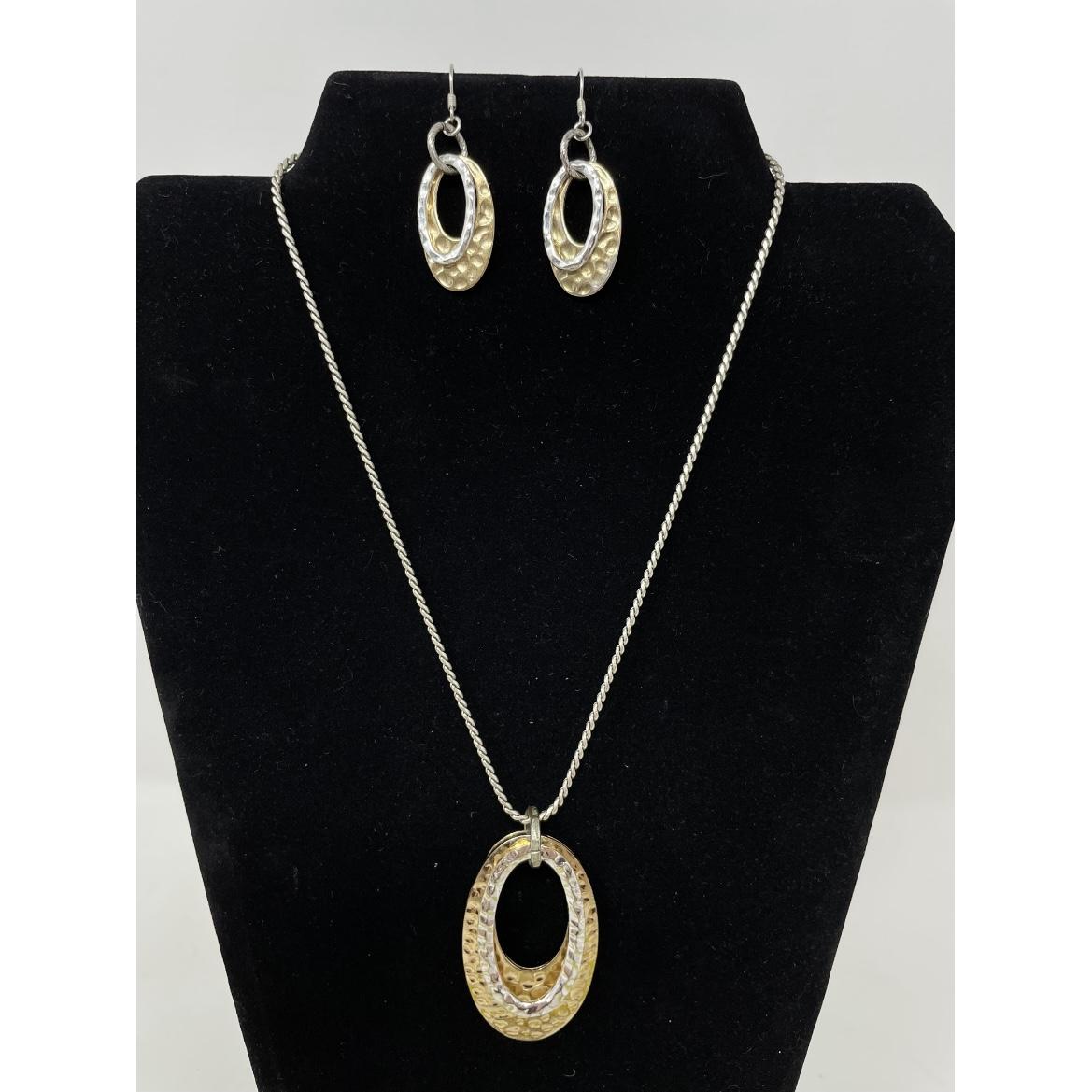 SILVER & GOLD TONED HAMMERED OVAL EARRING & NECKLACE SET