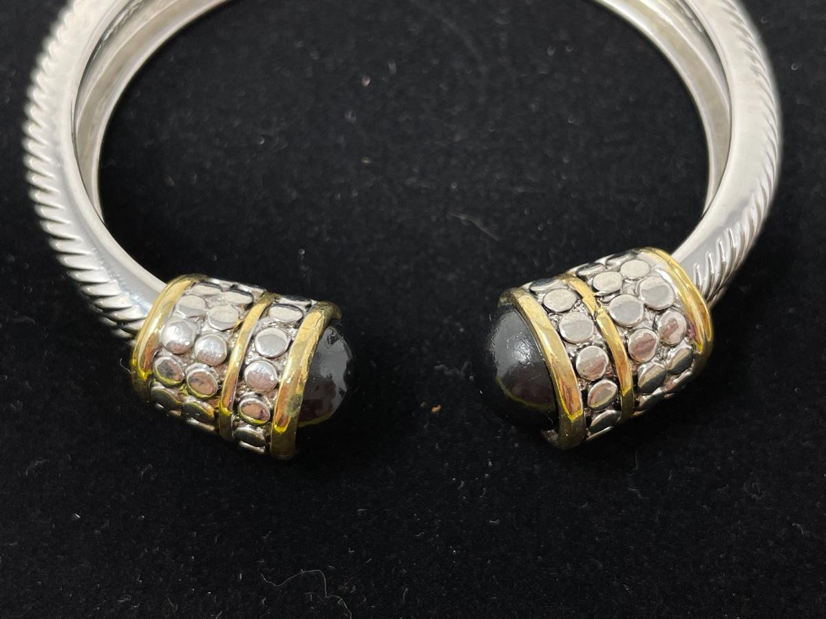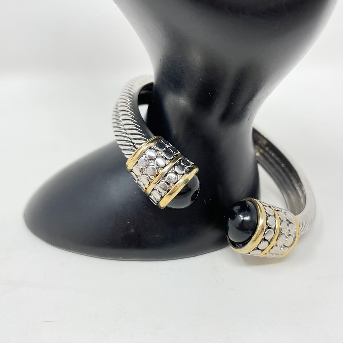 SILVER & GOLD TONED HINGED CUFF BRACELET