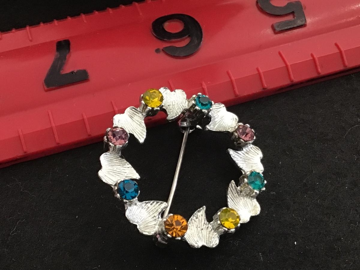 Silver Heart Multi Color Rhinestone Brooch