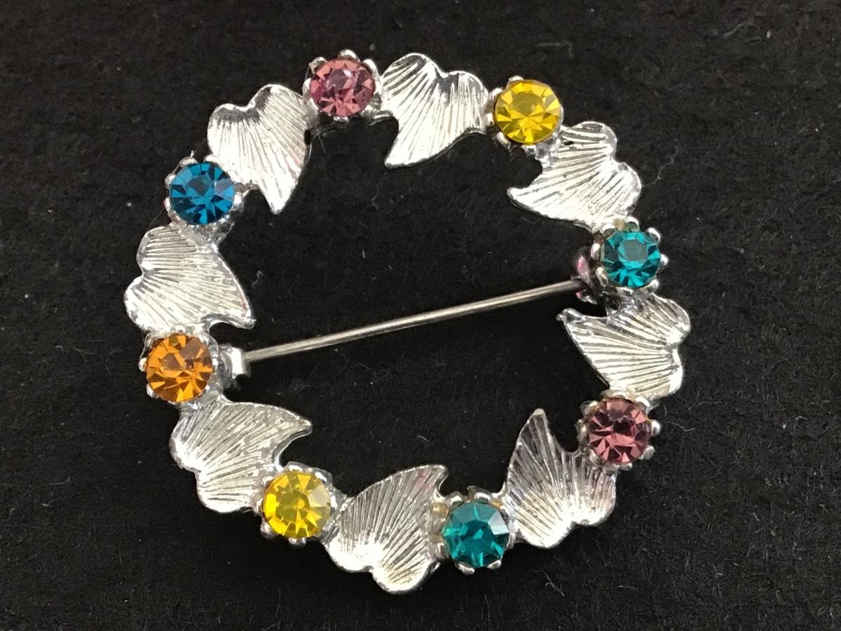 Silver Heart Multi Color Rhinestone Brooch
