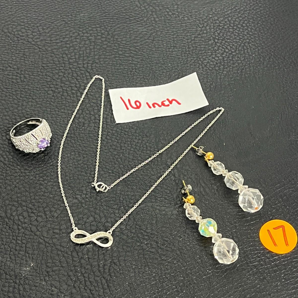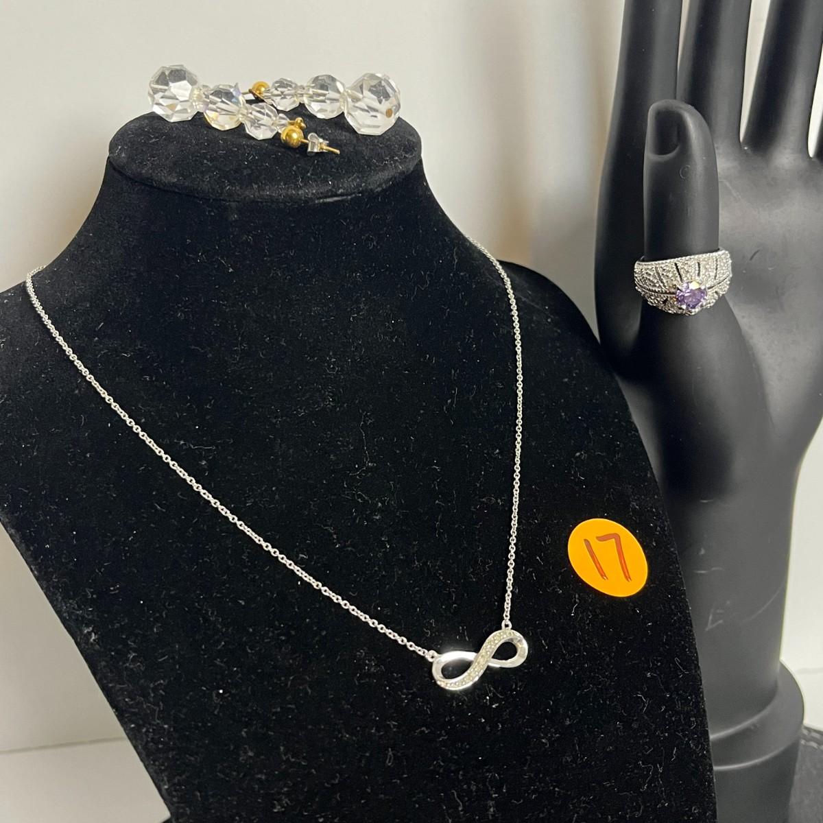 Silver Infinity Pendant Necklace, Earrings, and Ring (17)