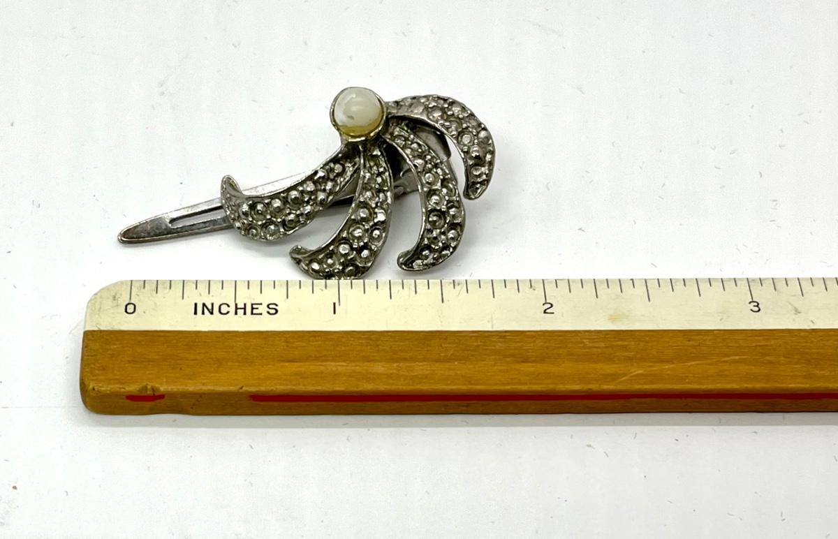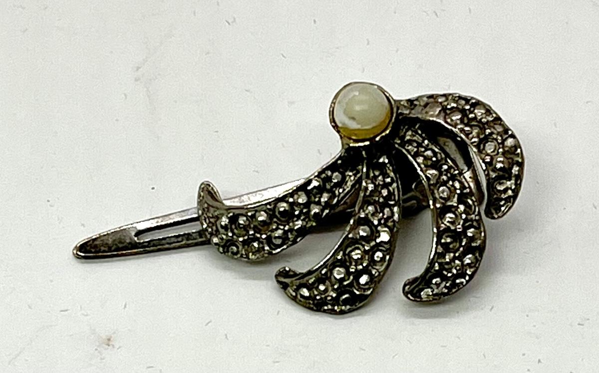 Silver jeweled and faux pearl costume pin