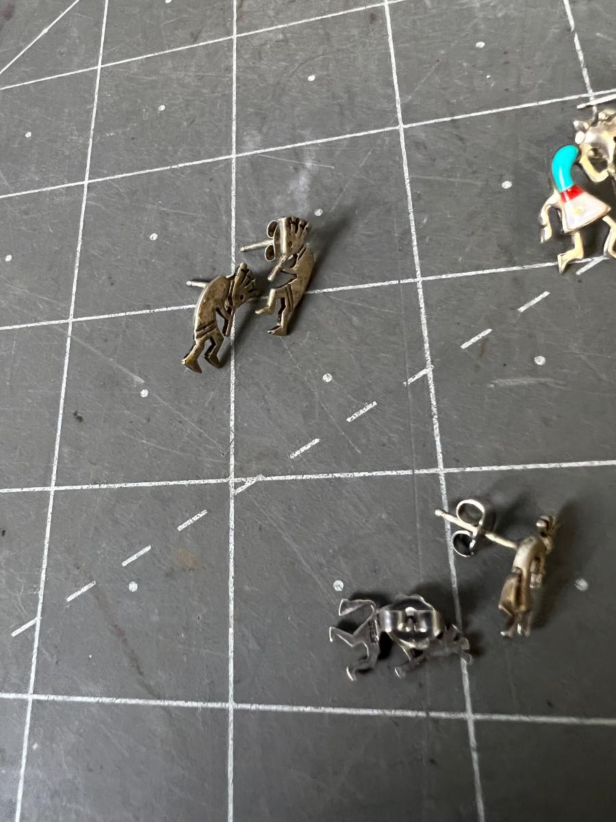 Silver Kokopelli  Earrings, Tie Tac, Pins