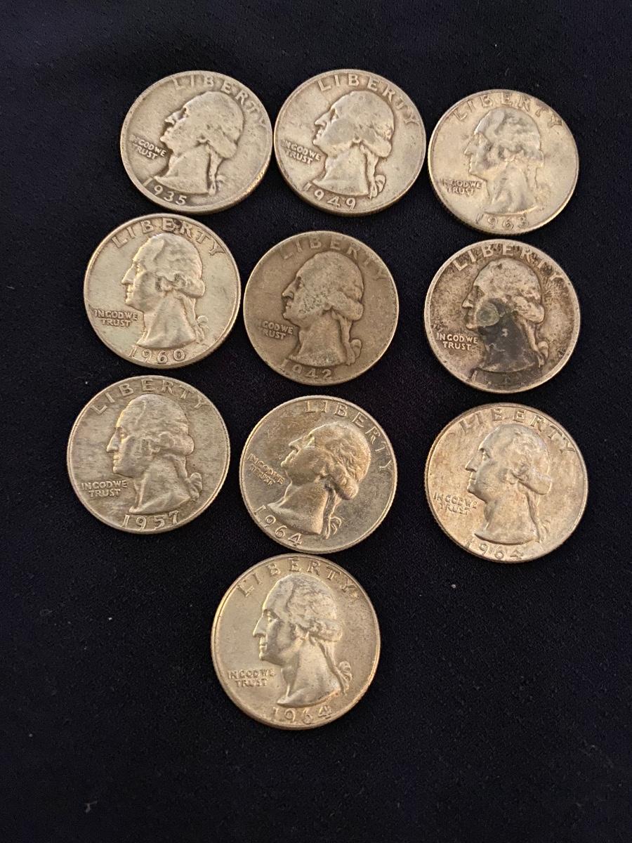 Silver Liberty Quarter Lot Qty 10 As Pictured