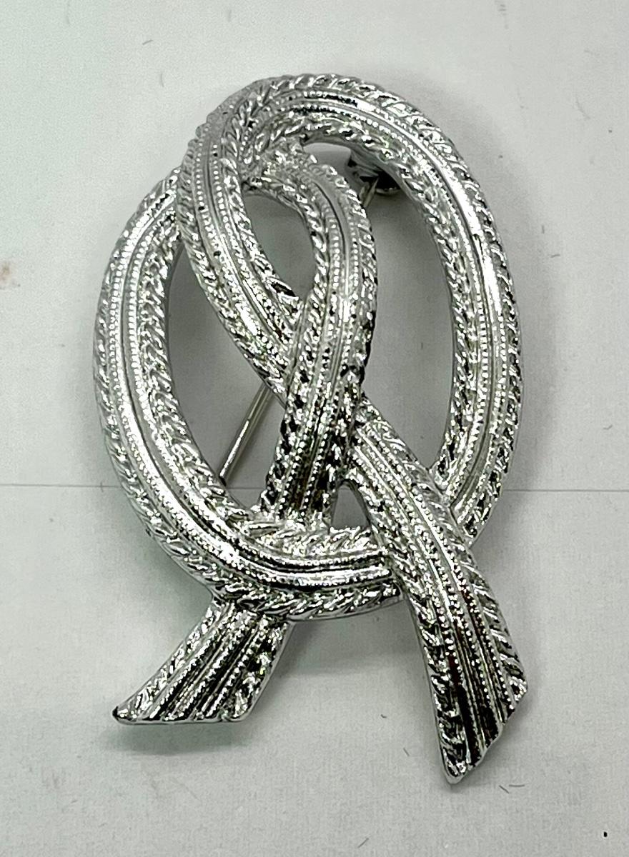 Silver looped knot pin