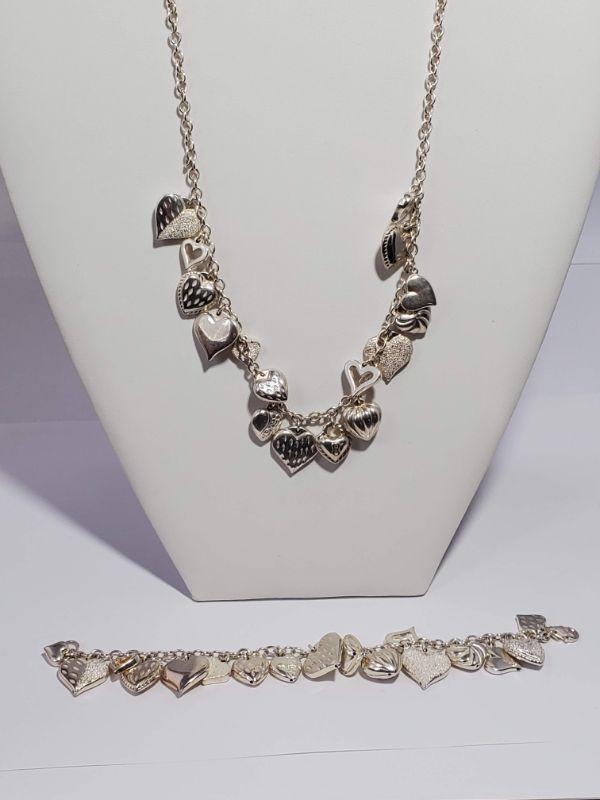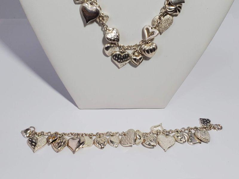 Silver Matching Bracelet/Necklace Pair w/ Hearts