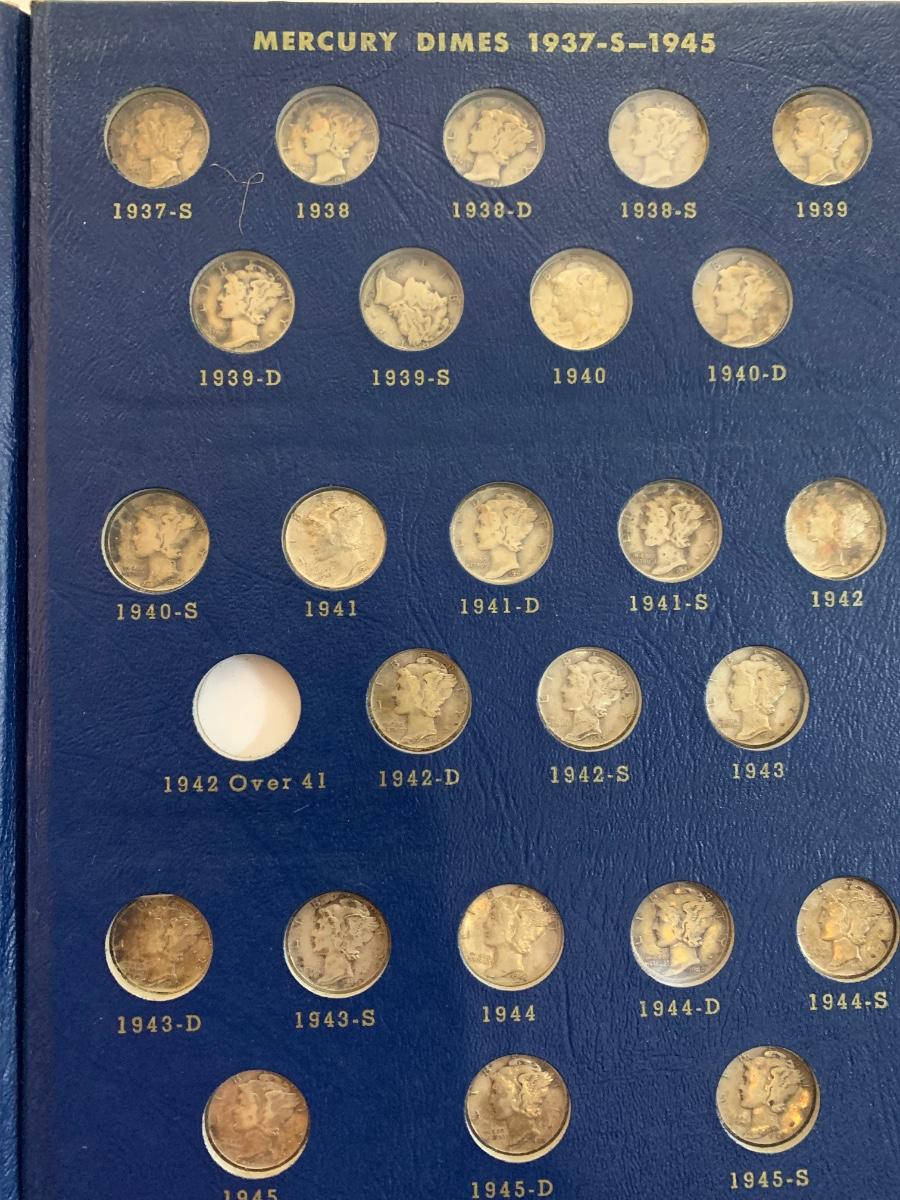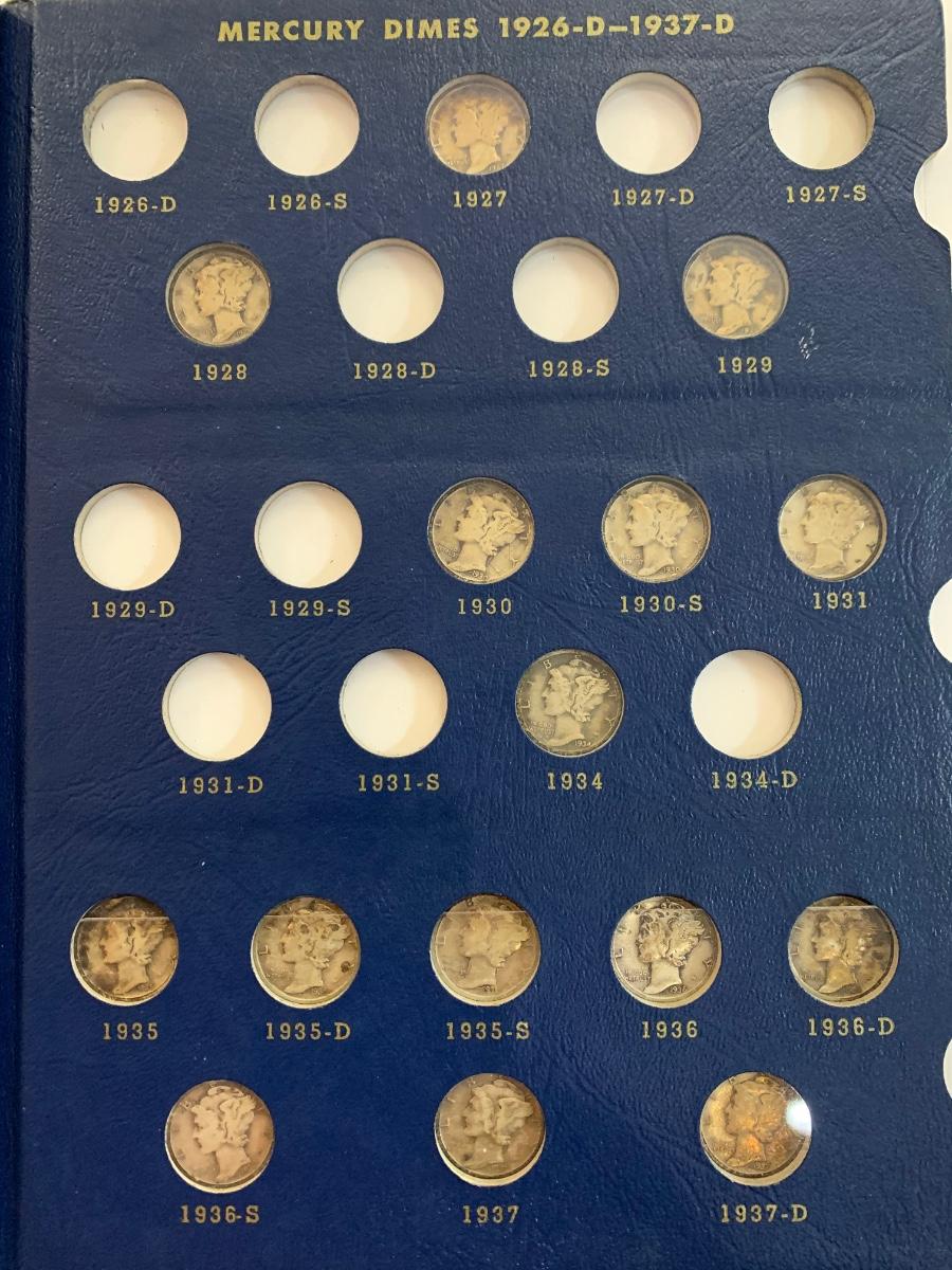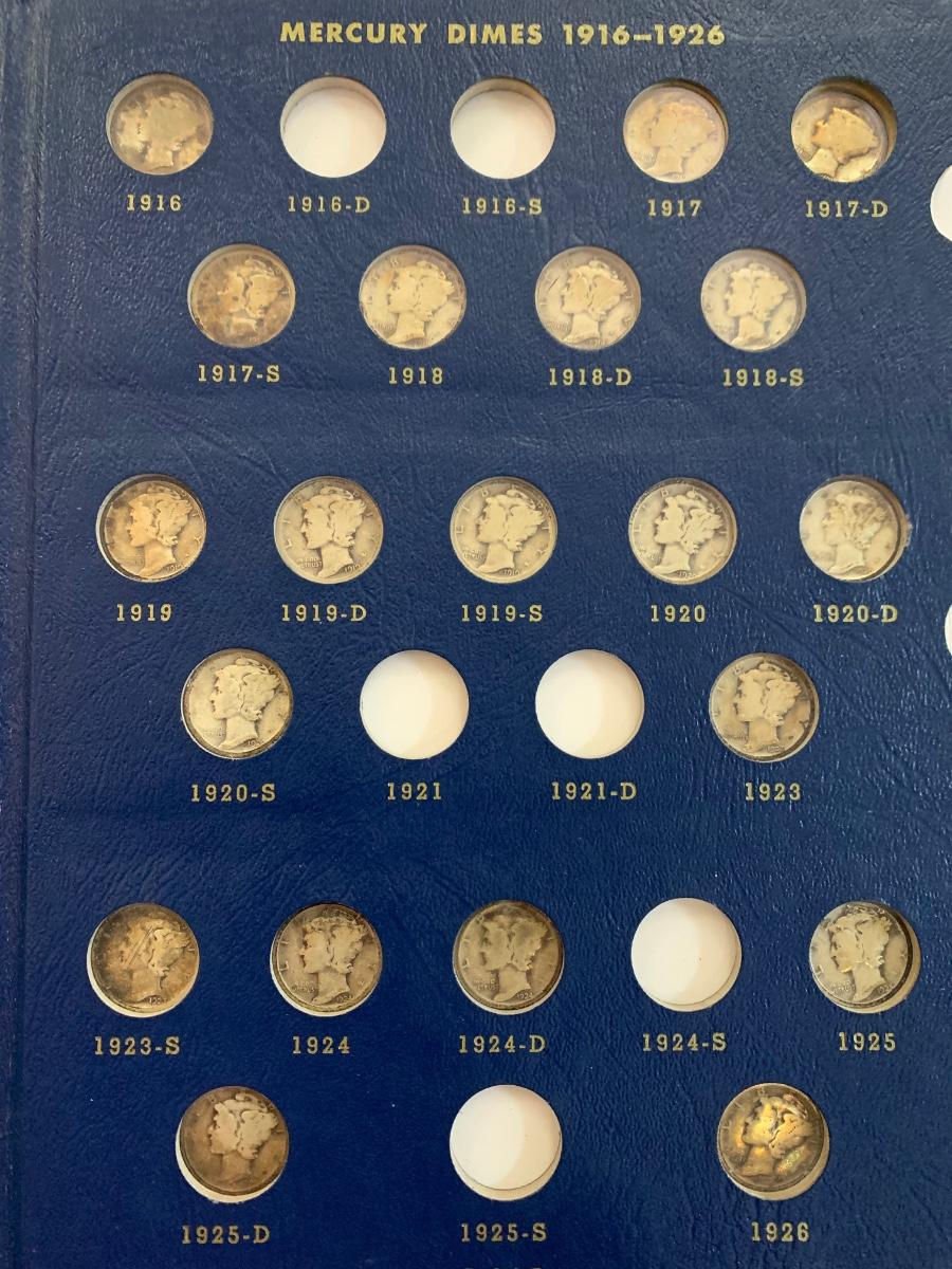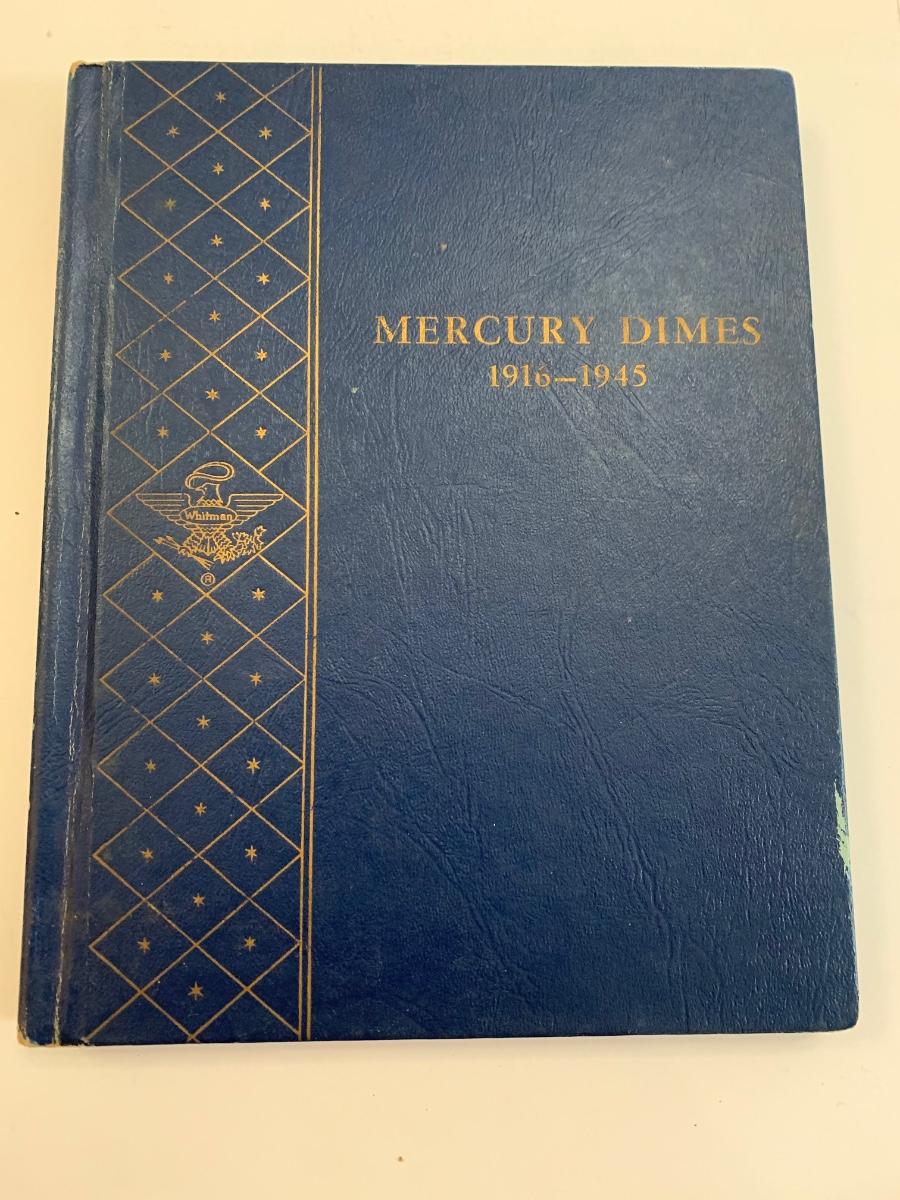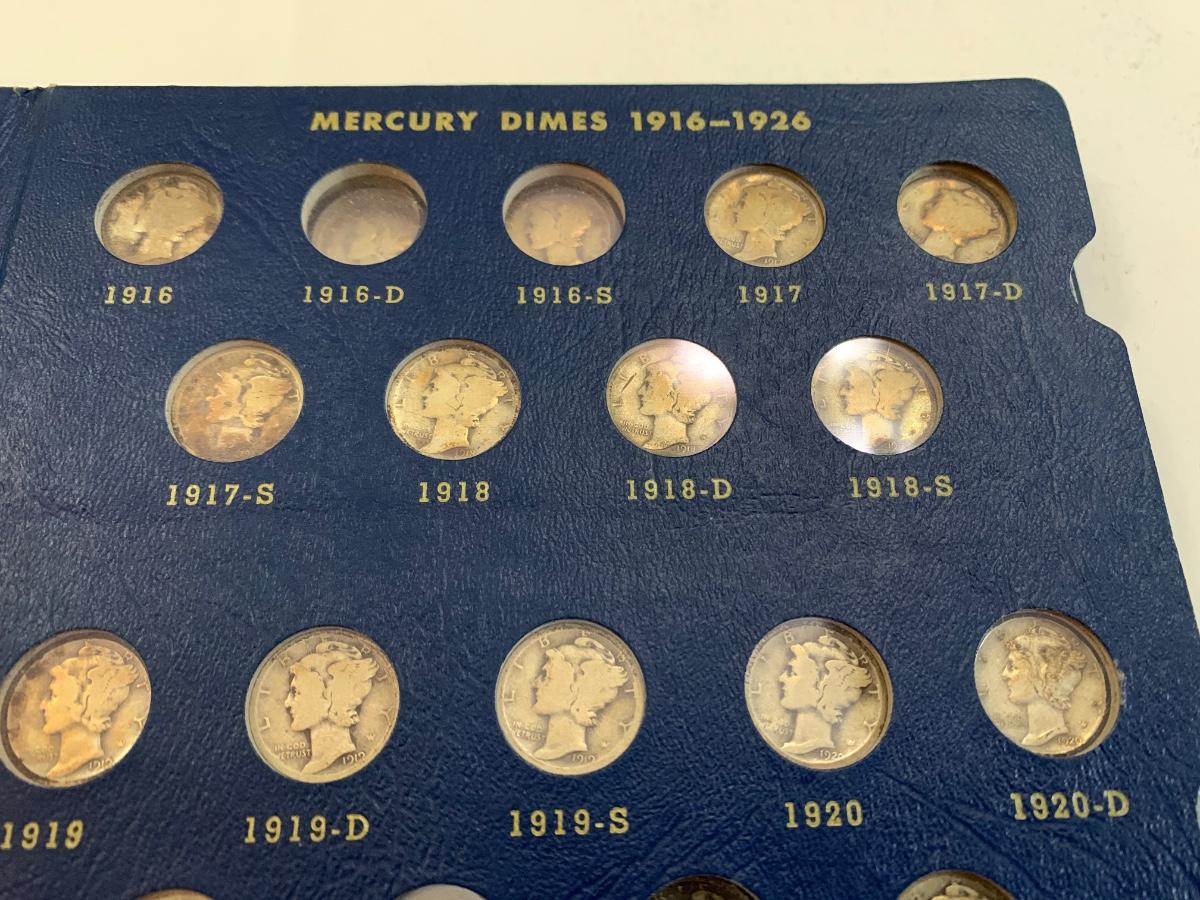 Mercury Dimes 1916-1945 in old Whitman Collectors 2-Sided View Book. 60 Silver Dimes Total (book not completely filled in).