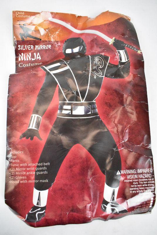 Silver Mirror Ninja Kids Costume, Complete. Damaged packaging. Small (4-6) - New