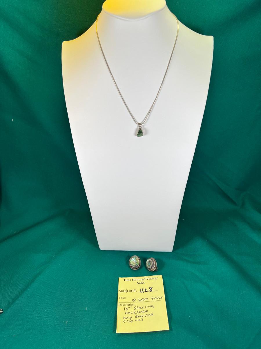 18 grm 18" Sterling Silver Necklace with stone textured Sterling silver earrings