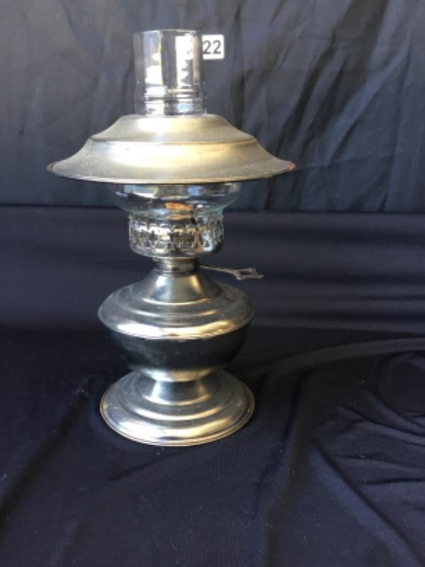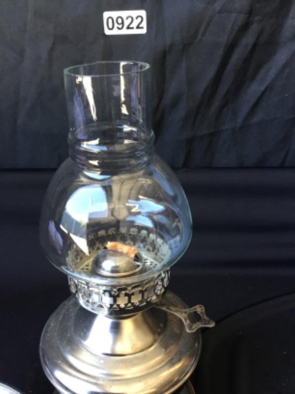 Silver oil lantern with globe Lot 922 I