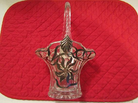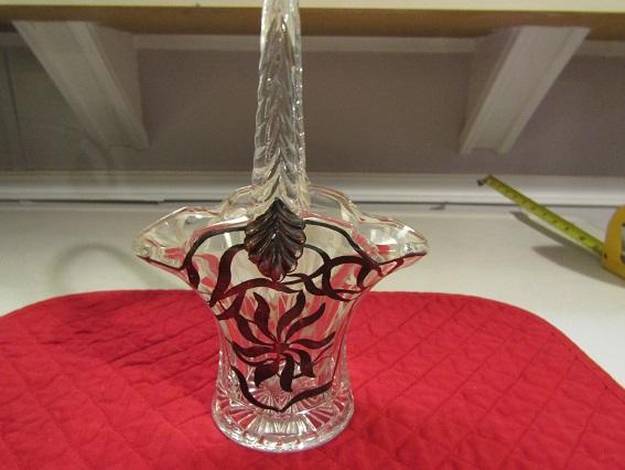 Silver Overlay Pressed Glass Basket