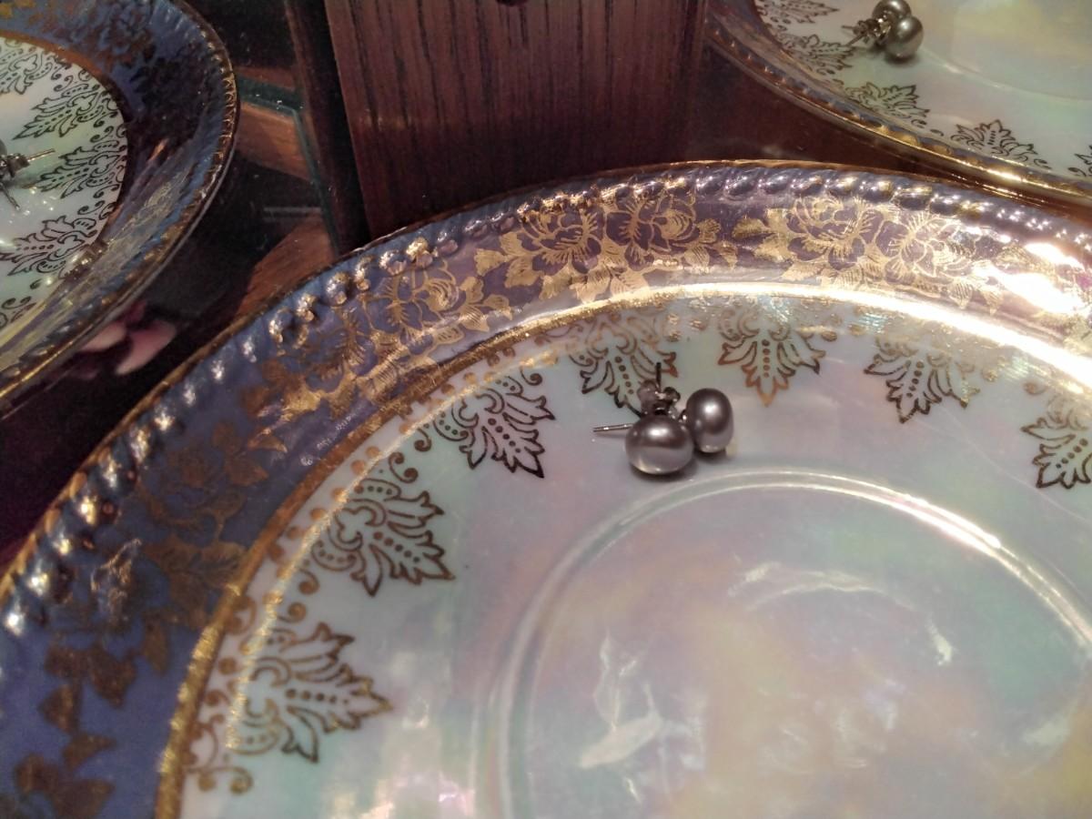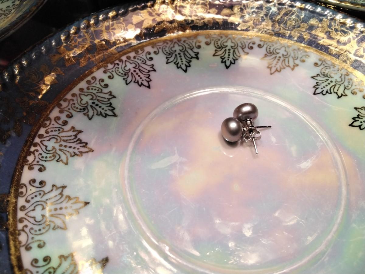 7.5 Silver Button Pearls on Sterling Silver Stud backs