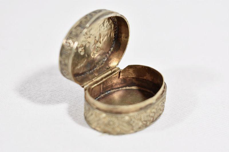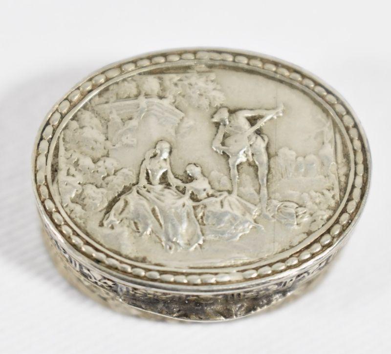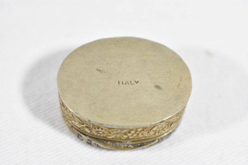 Stamped "ITALY" Outdoor scene of two women serenaded by violin player, hinged lid
