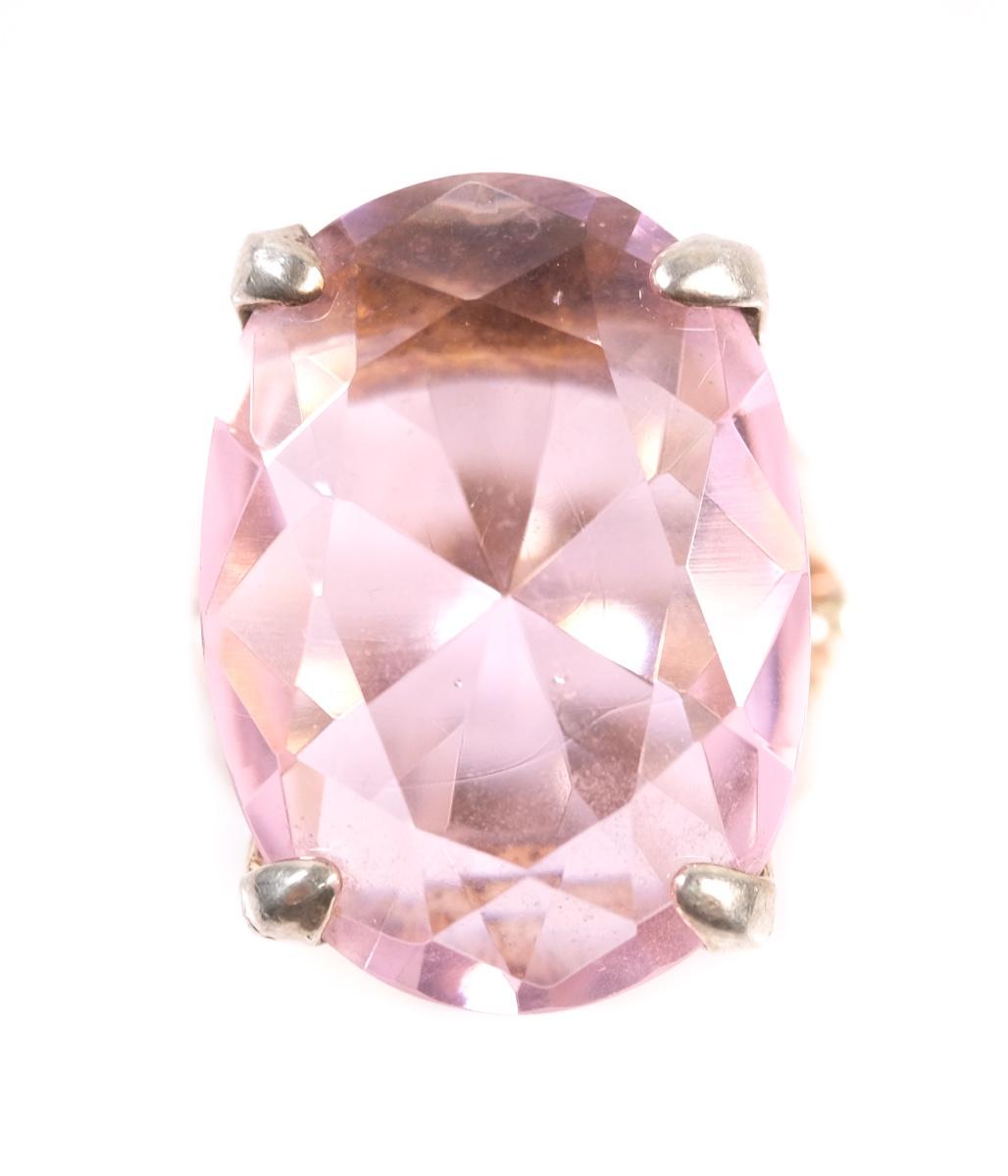 Silver and pink gemstone cocktail ring. Size 8. Apparently unmarked. Stone measures approx. 1".