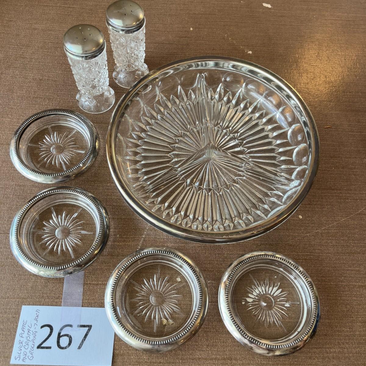 Silver Plate and Crystal Grouping