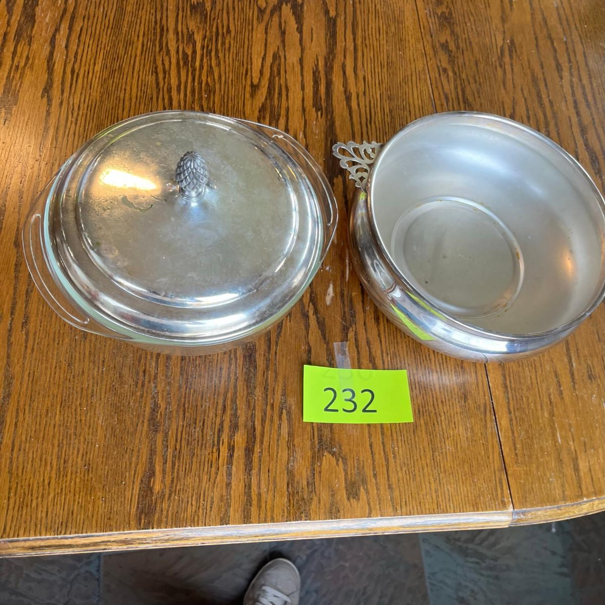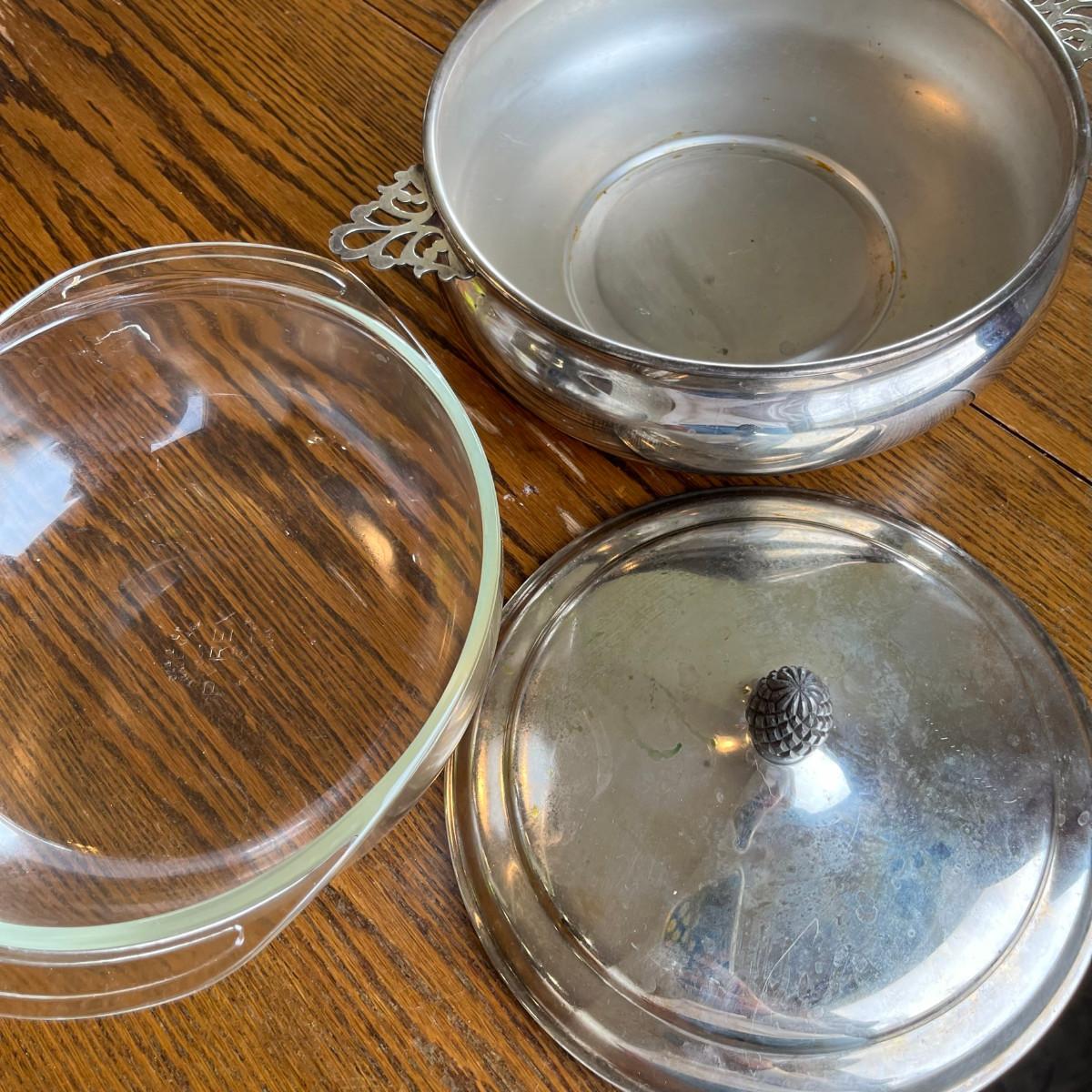 Silver Plate Covered Veggie bowl w/ Glass Insert