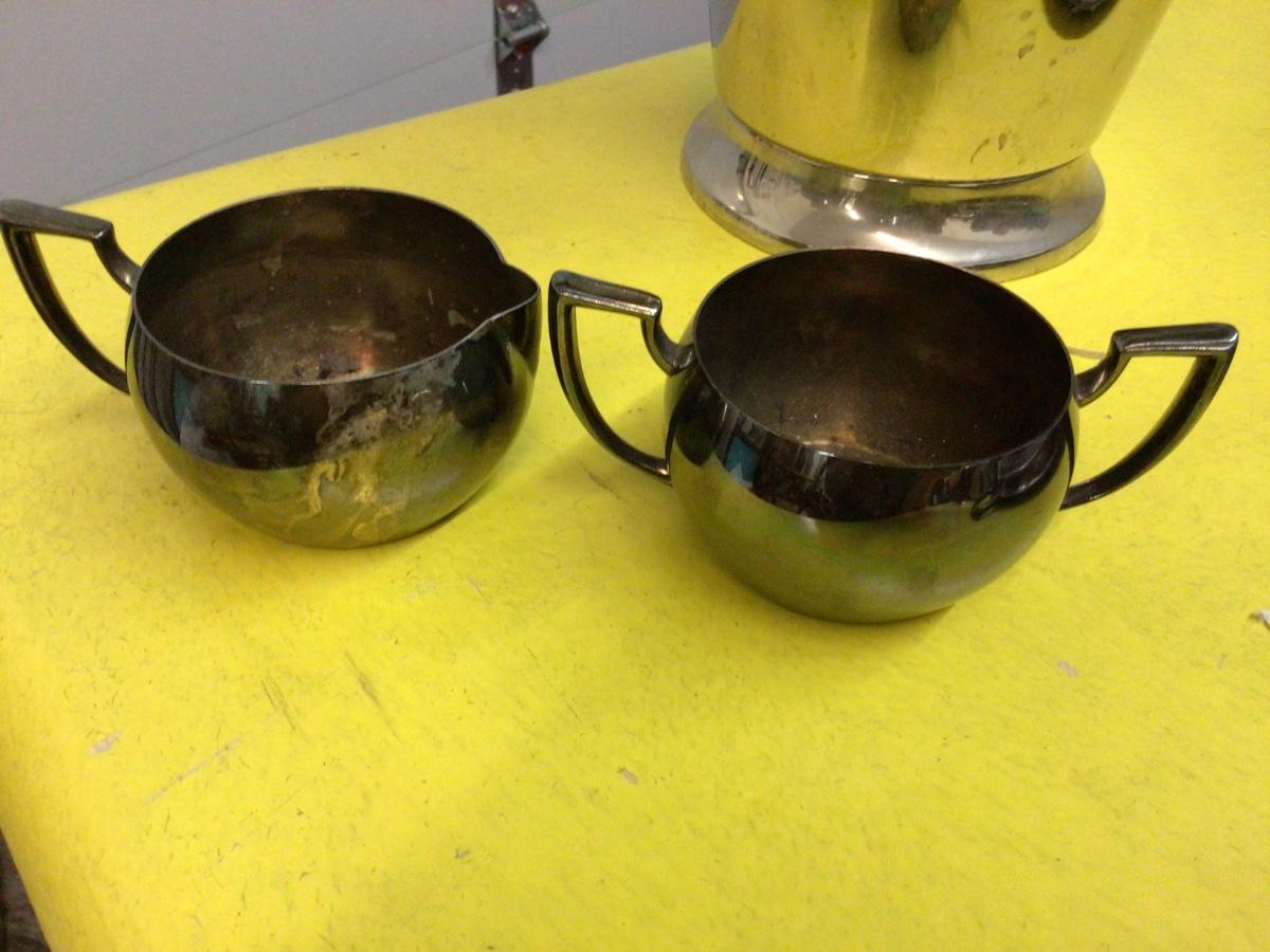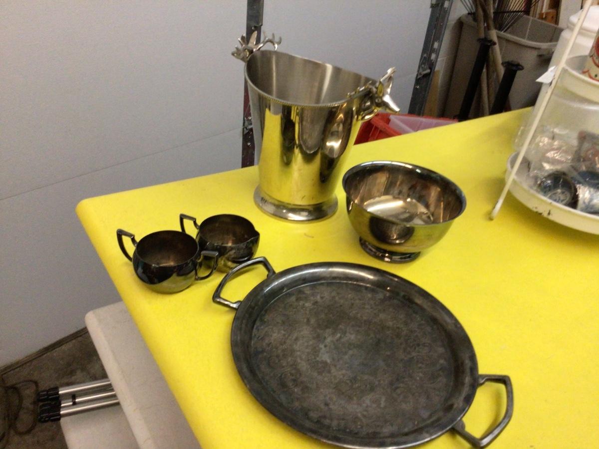 You get tray, cream and sugar, bowl, and great deer ice bucket