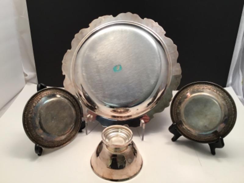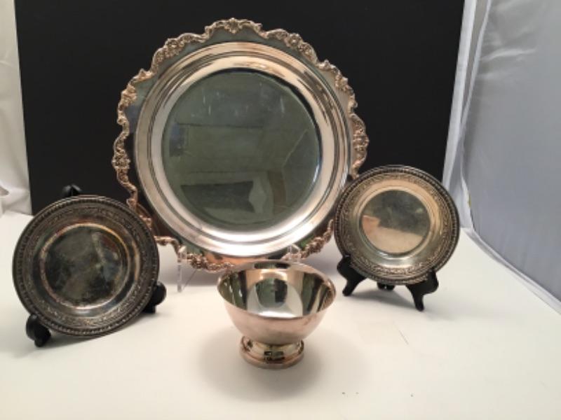 Silver plate lot four pieces Wallace Silversmith, 2- Reed & Barton, Wm Rogers