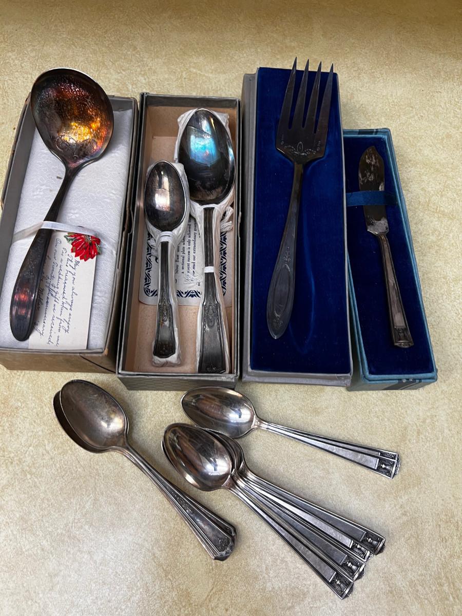 Silver Plate Mixed Lot Spoons, Fork, Ladle.