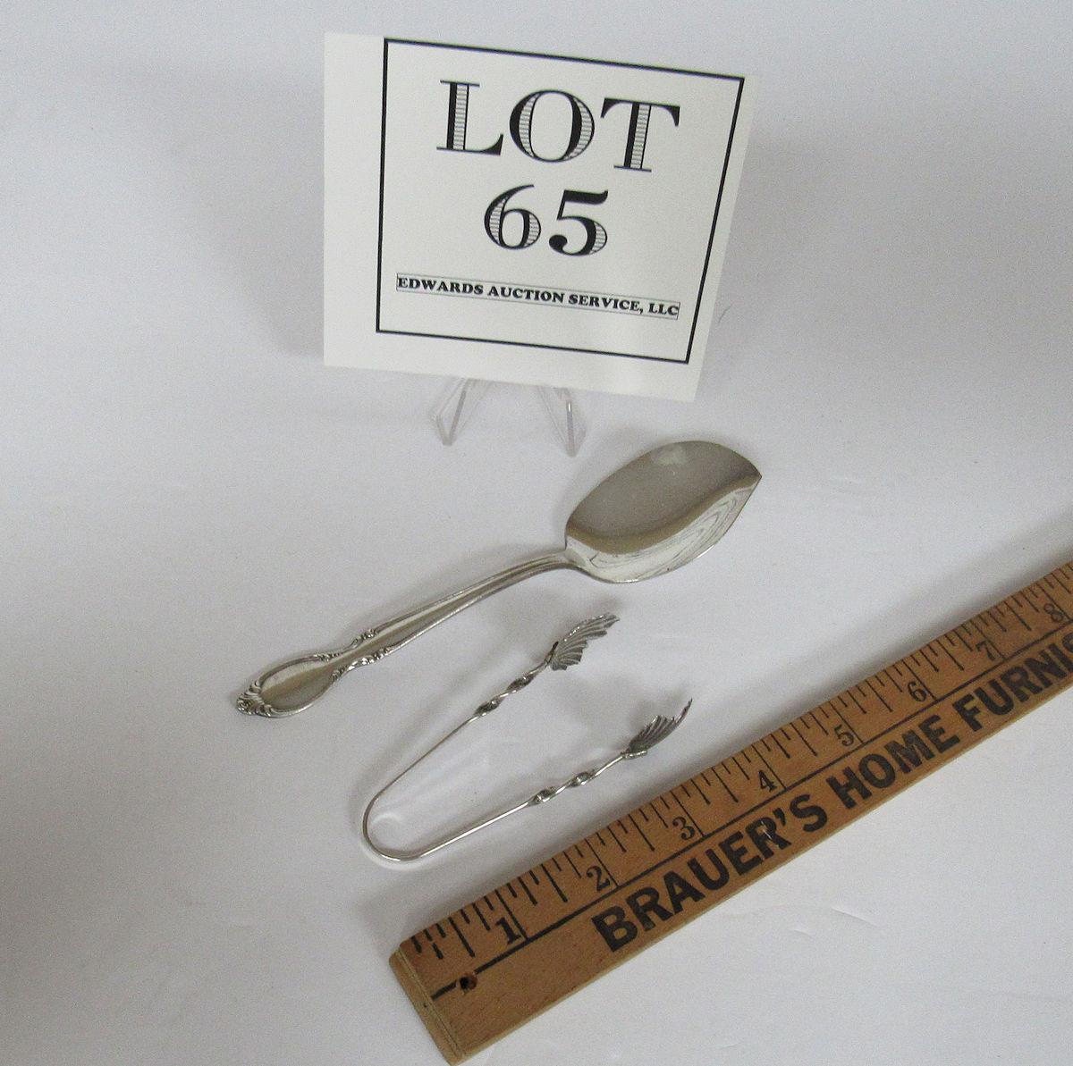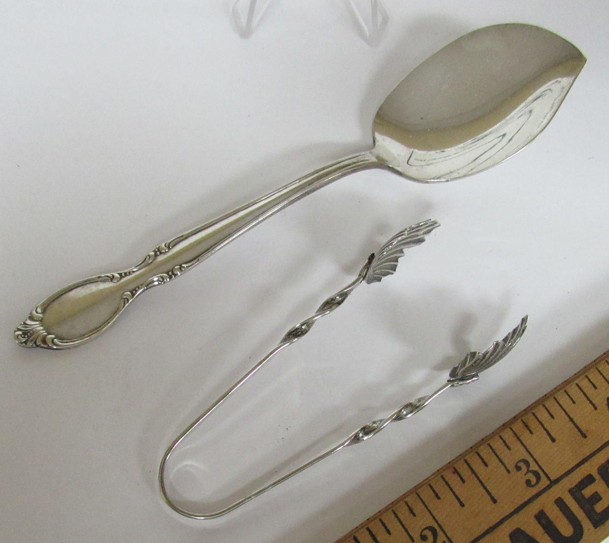Silver Plate Rogers Bros Precious Mirror 1954 Serving Spoon and Unmarked Vintage Sugar Tongs