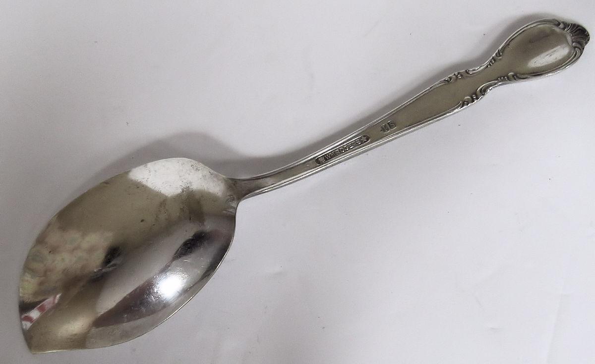 Good condition with some wear on the bowl of the spoon. Needs to be cleaned and shined up. Shipping is available at shipping cost plus $5.00 handling fee on up to 8 lots, $10.00 handling fee on 9 or more lots or two boxes.
