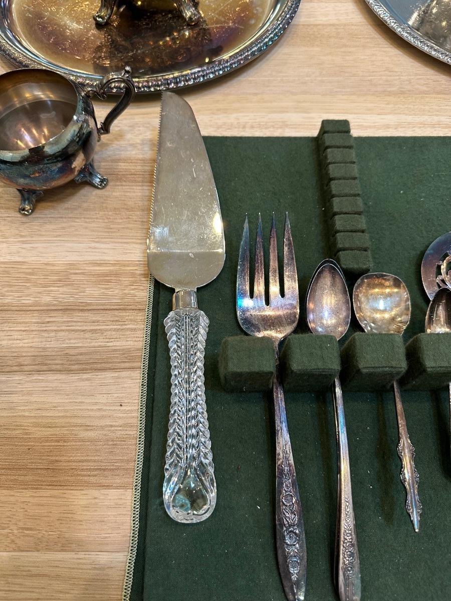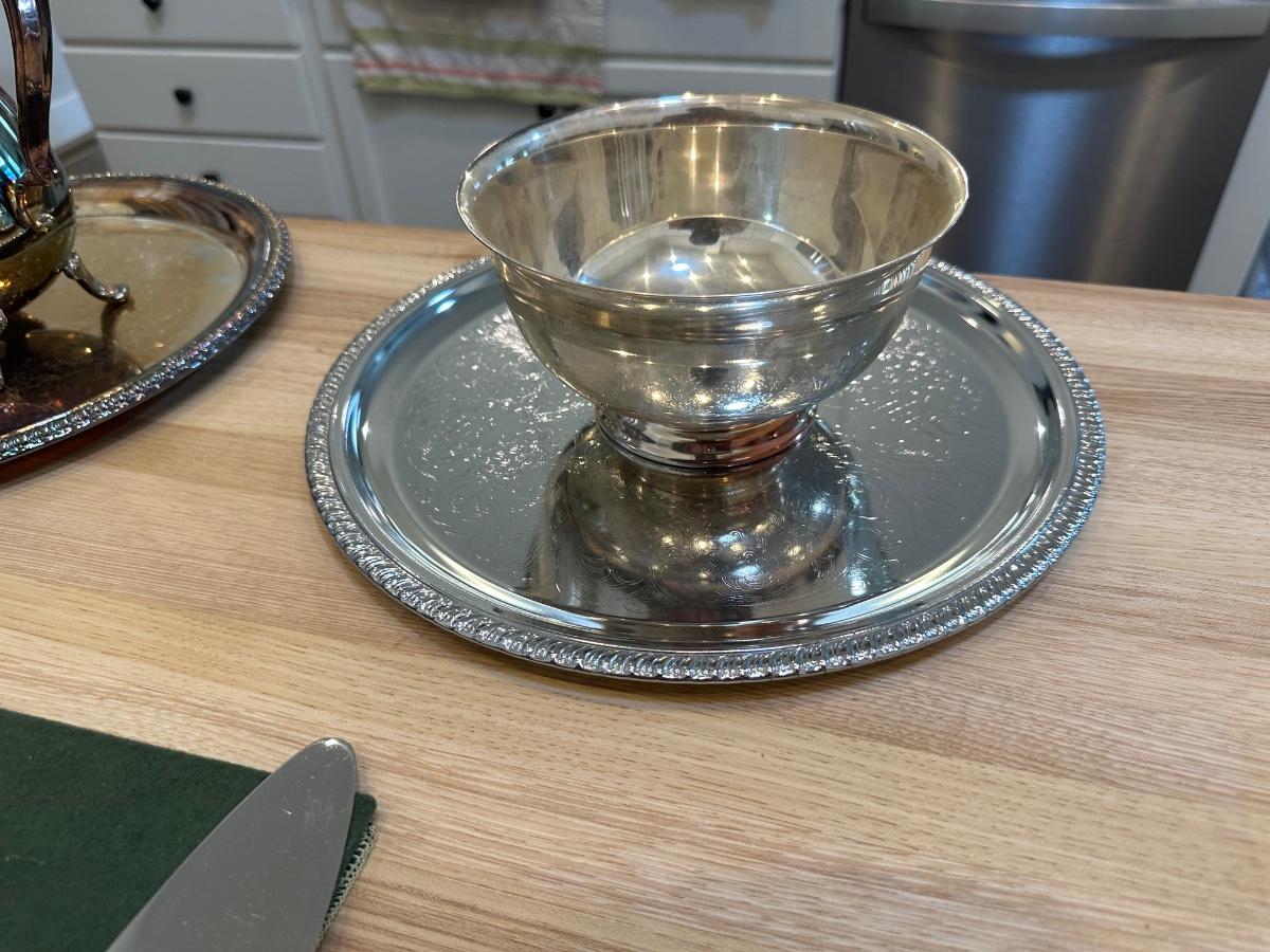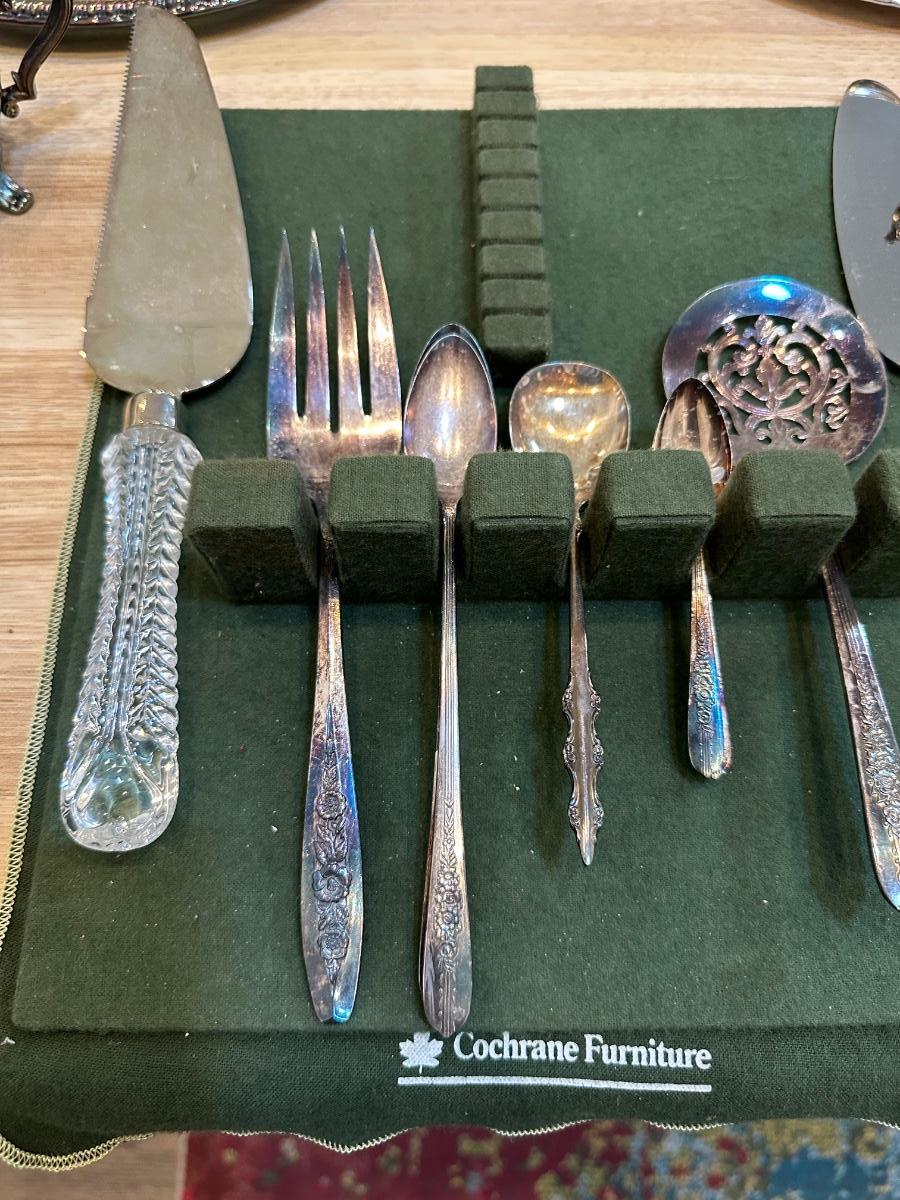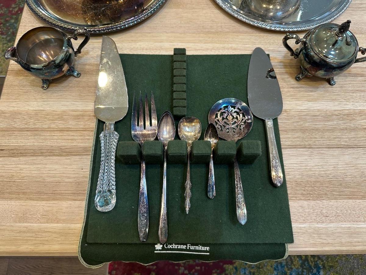 SILVER PLATE TEA SERVICE AND SERVING PIECES