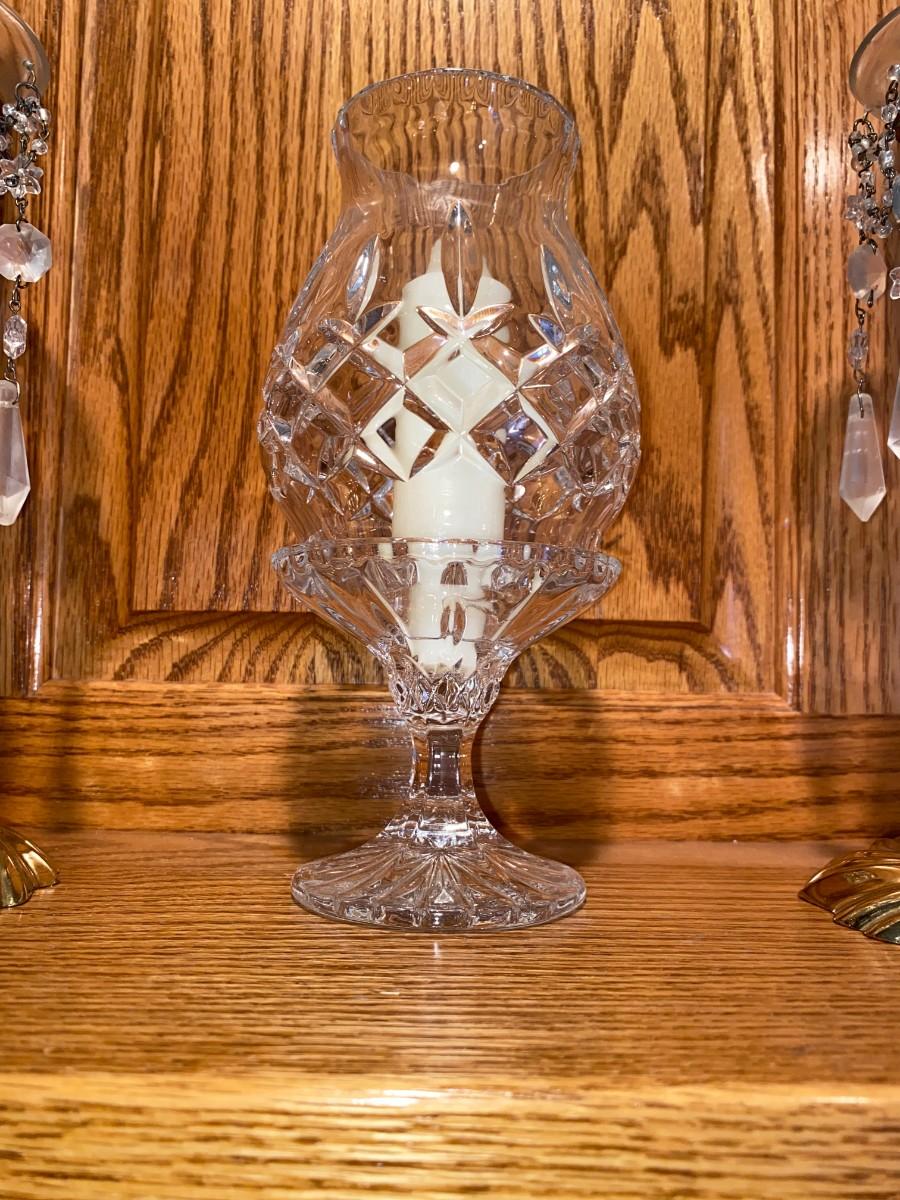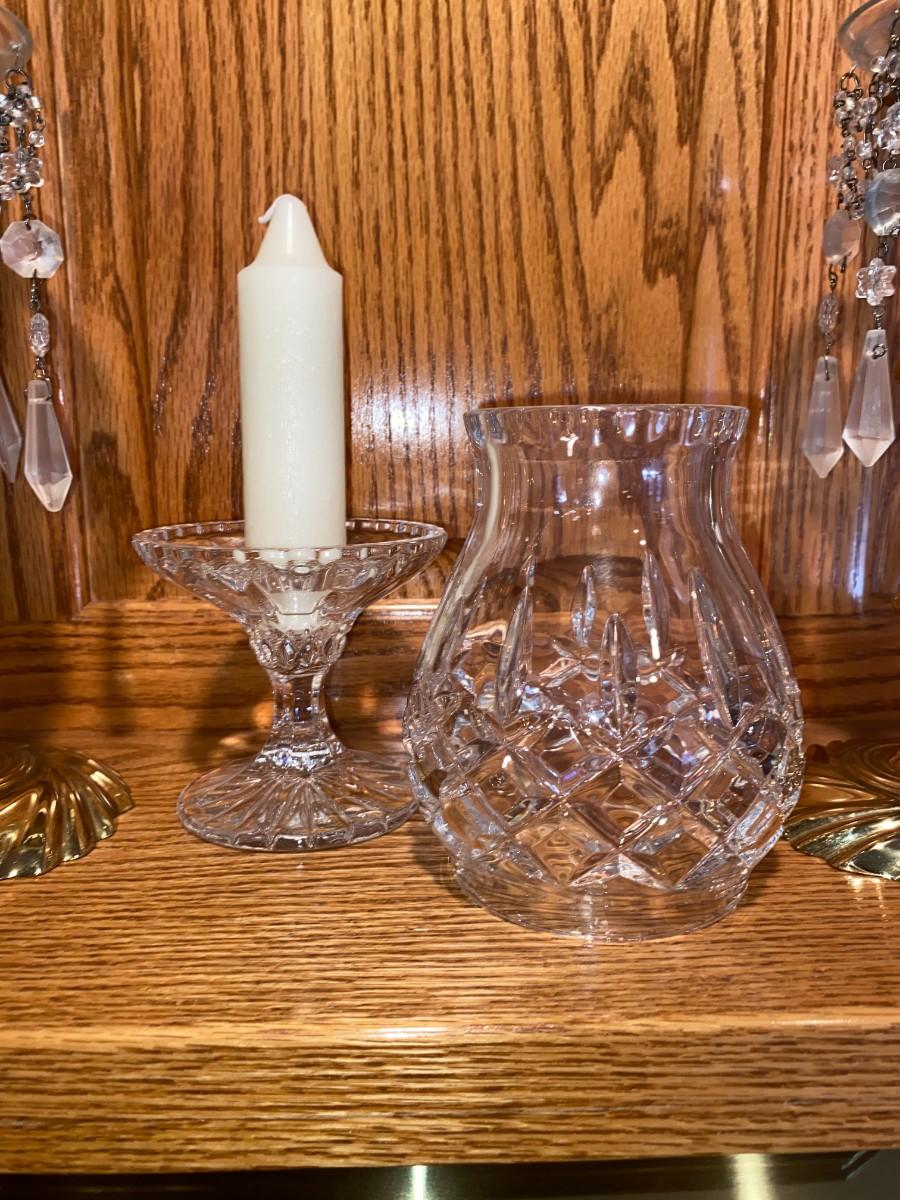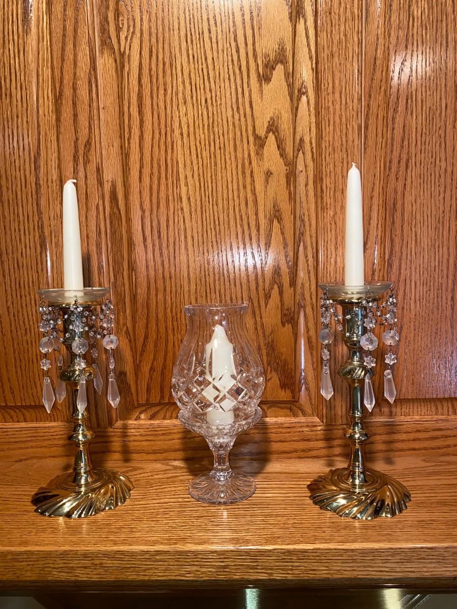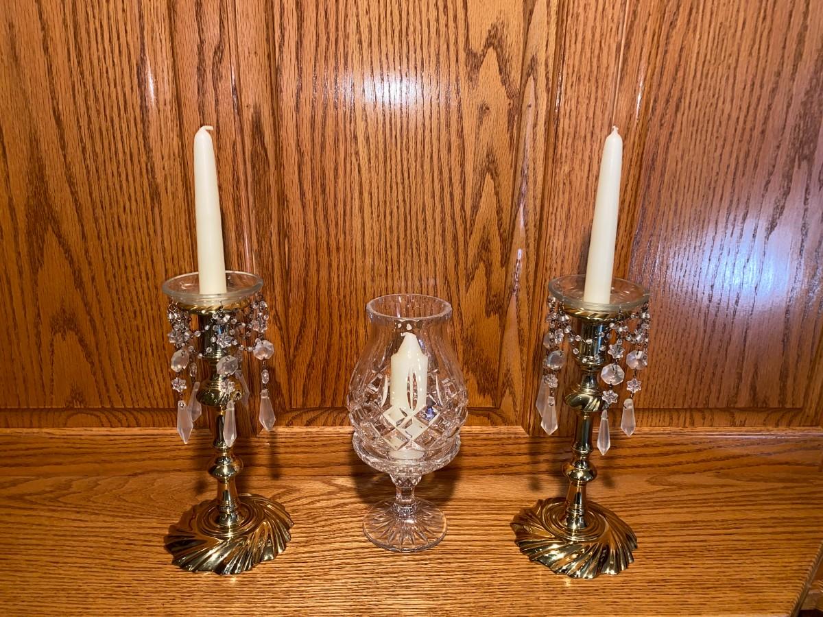 SILVER PLATED CANDLESTICK HOLDERS WITH CRYSTAL ACCENTS AND LEAD CRYSTAL CENTERPIECE CANDLE HOLDER