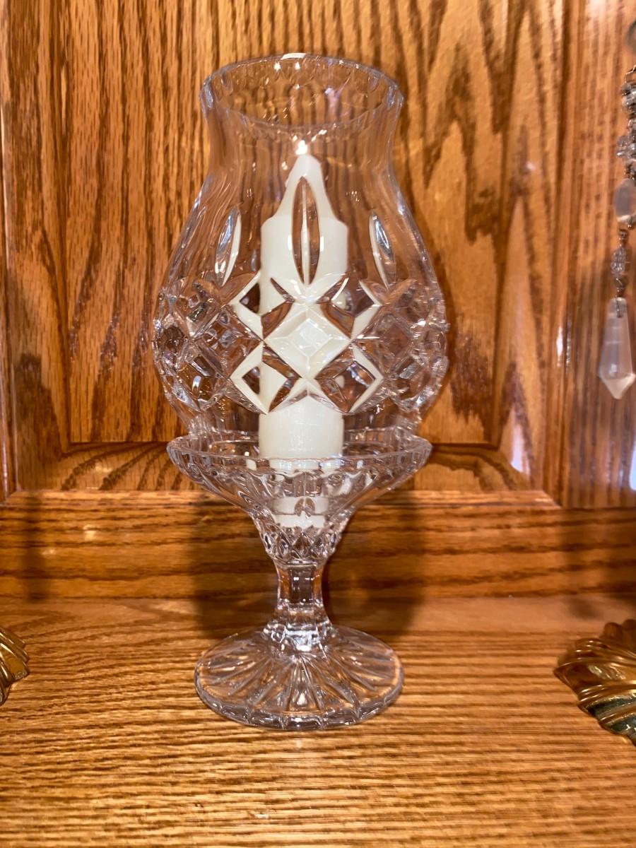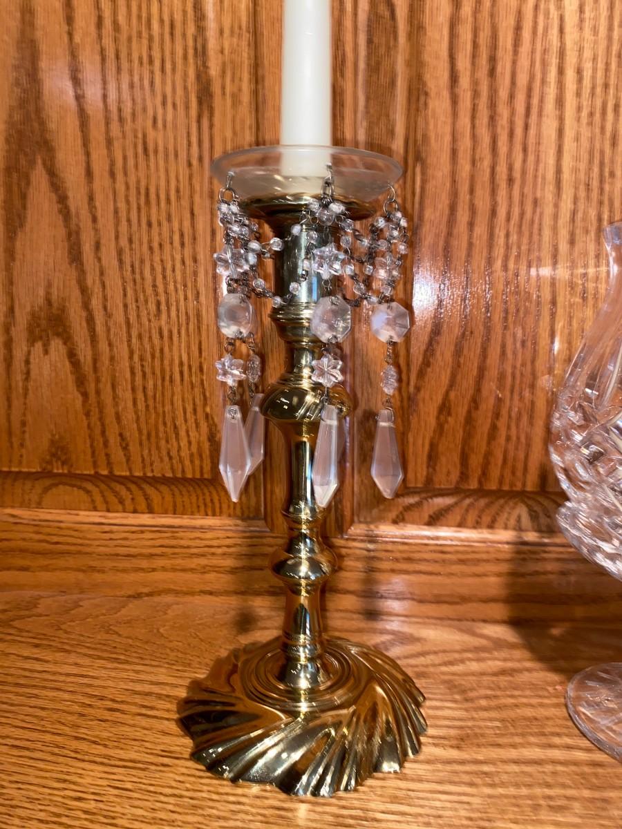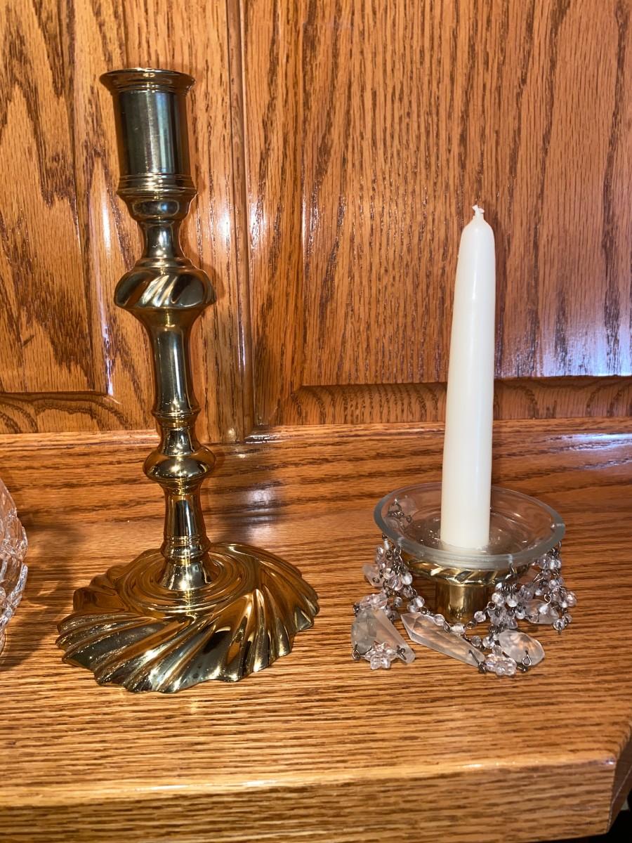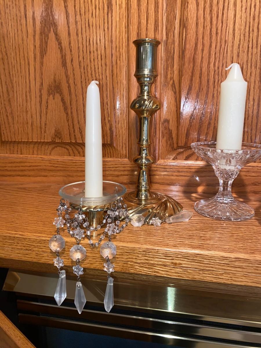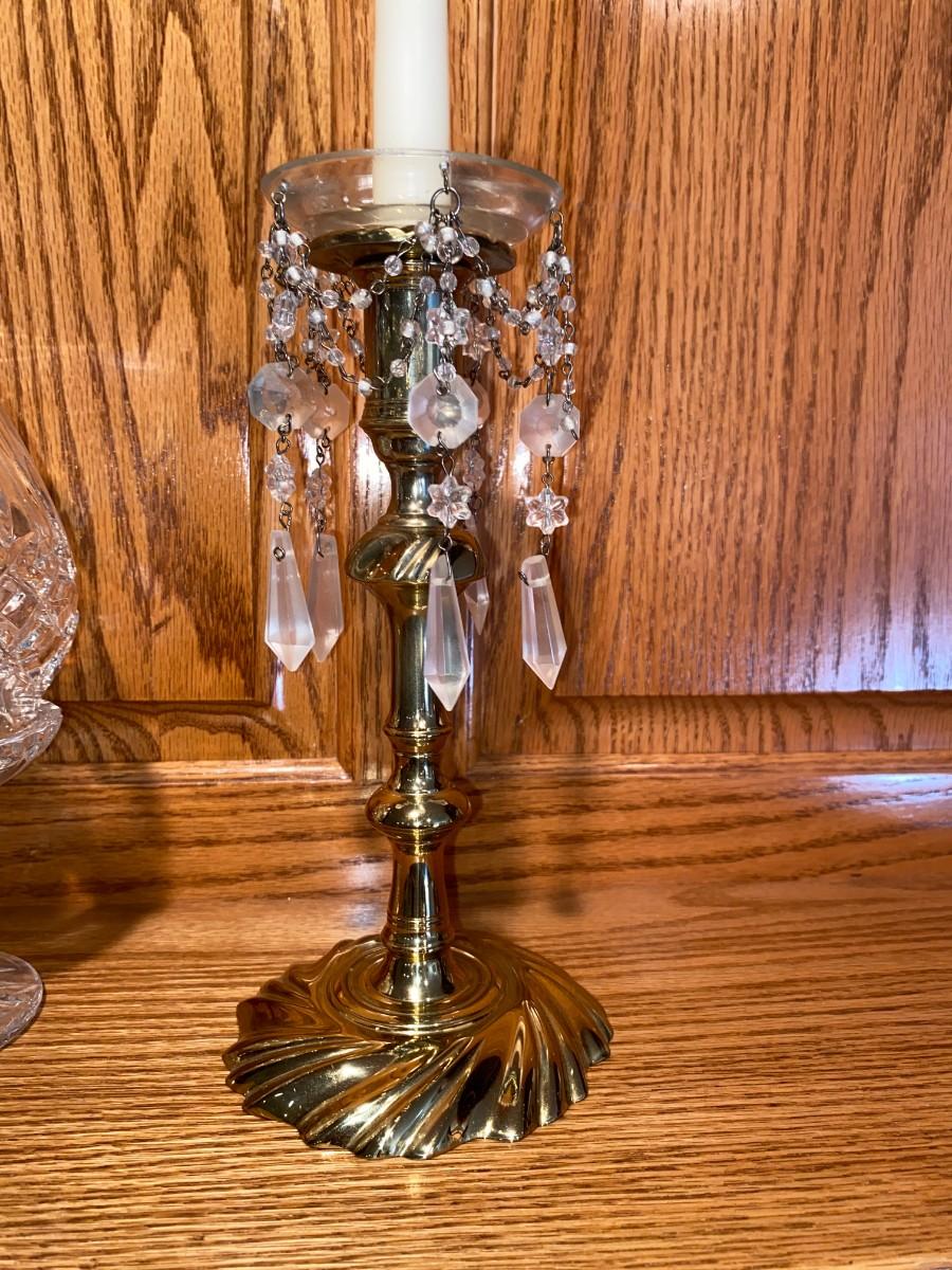 SILVER PLATED CANDLESTICK HOLDERS WITH CRYSTAL ACCENTS AND LEAD CRYSTAL CENTERPIECE CANDLE HOLDER