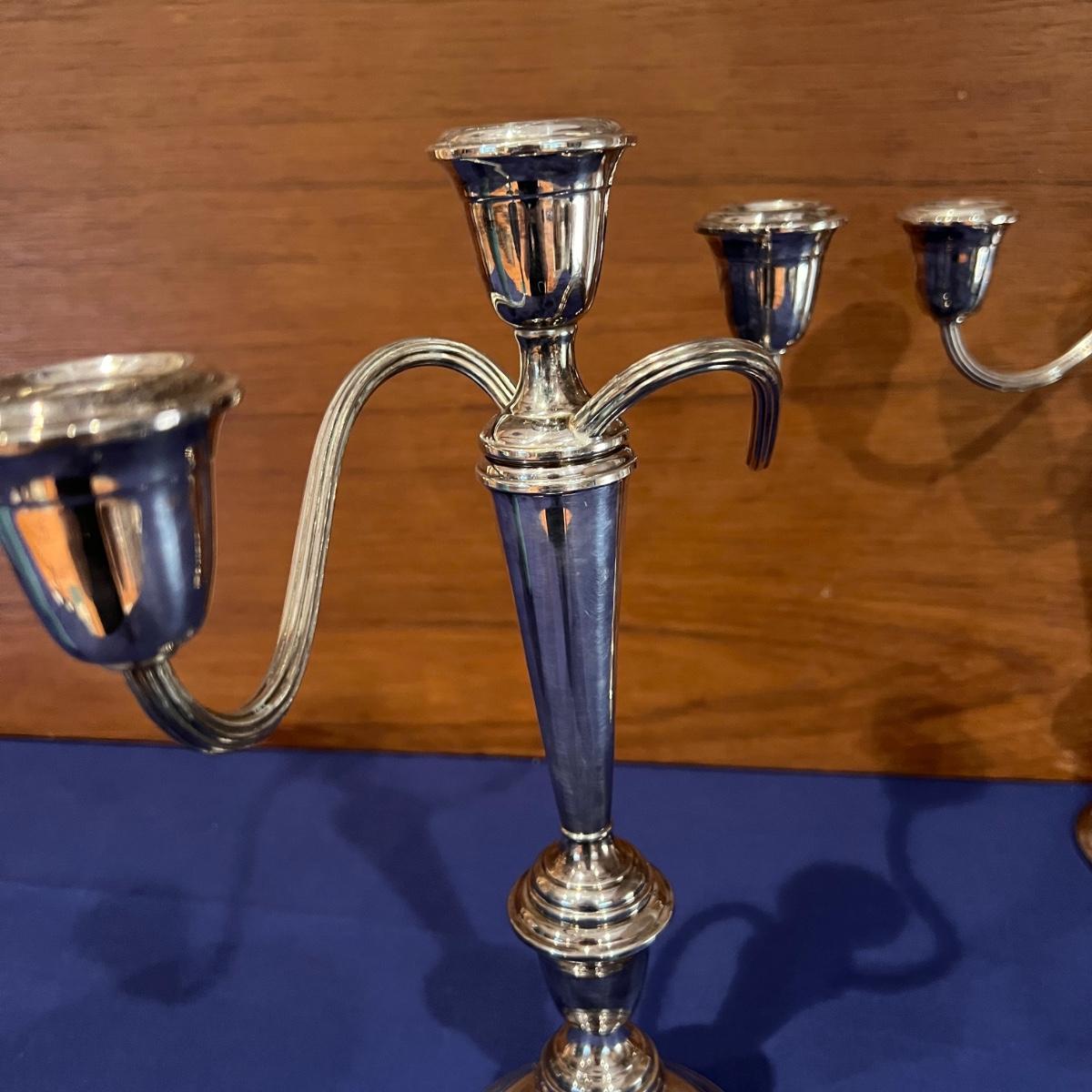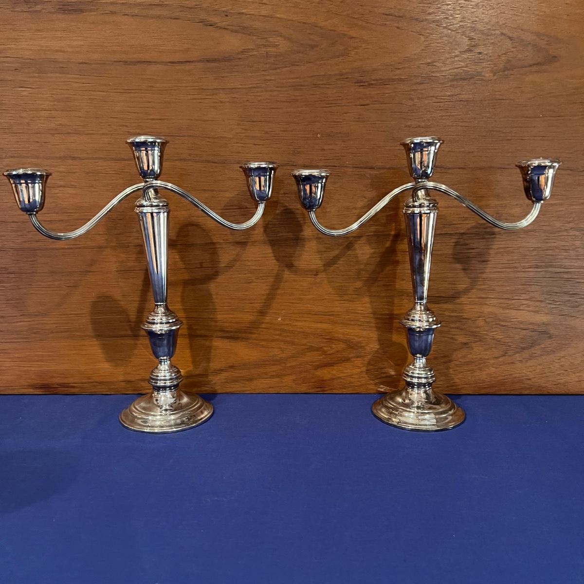 Pair of Pilgrim Vintage Silver Plate 3 Arm Candelabra Candle Stick Holders