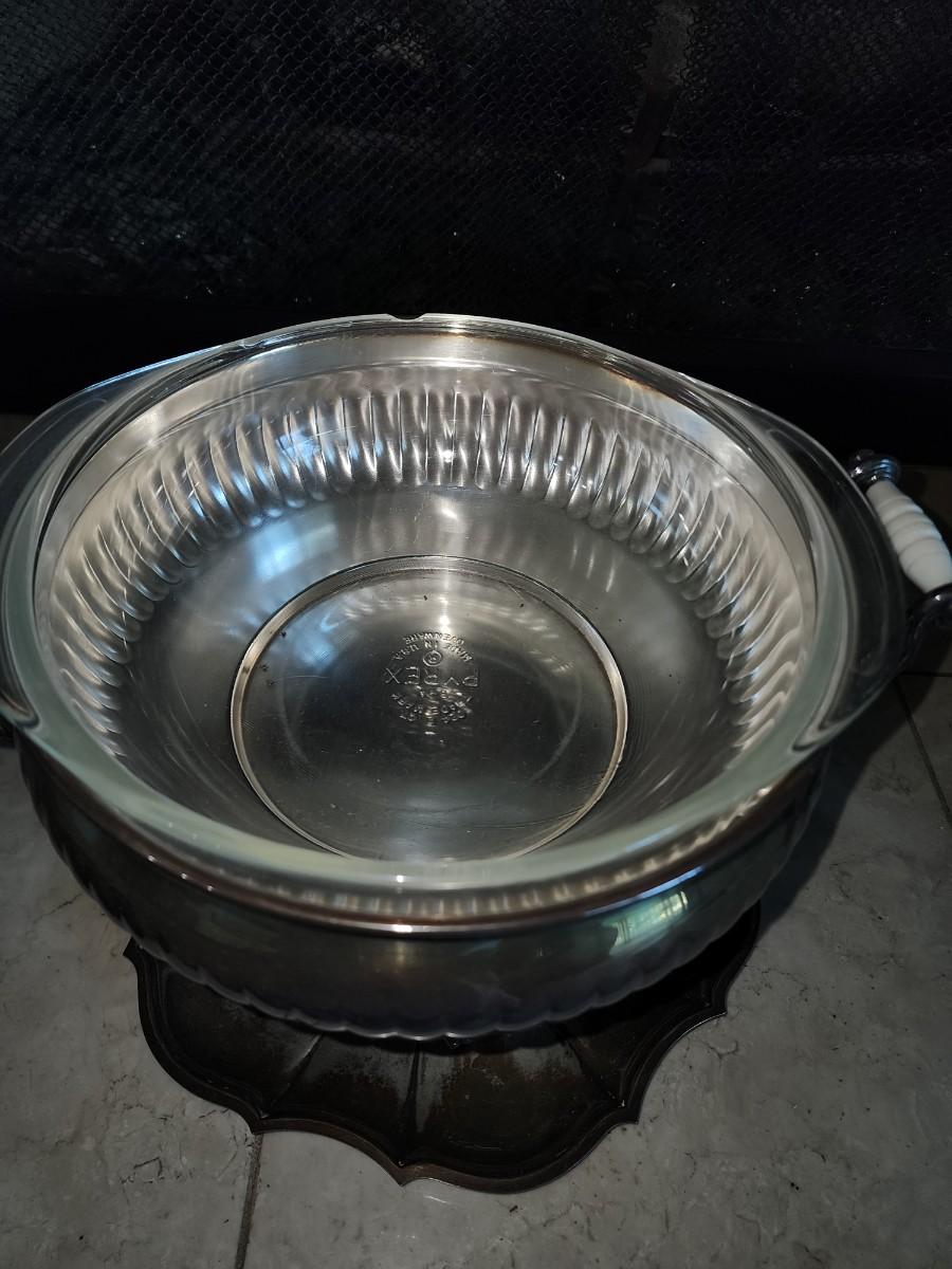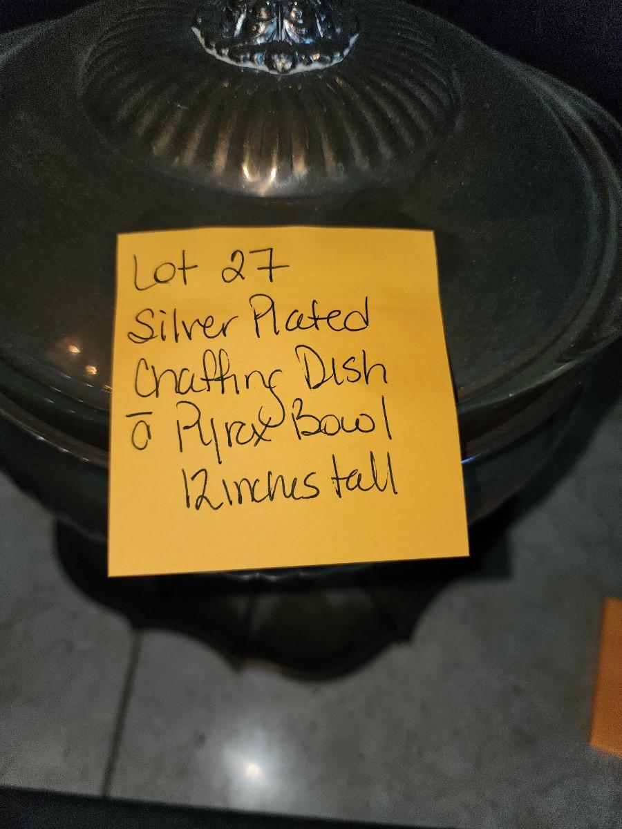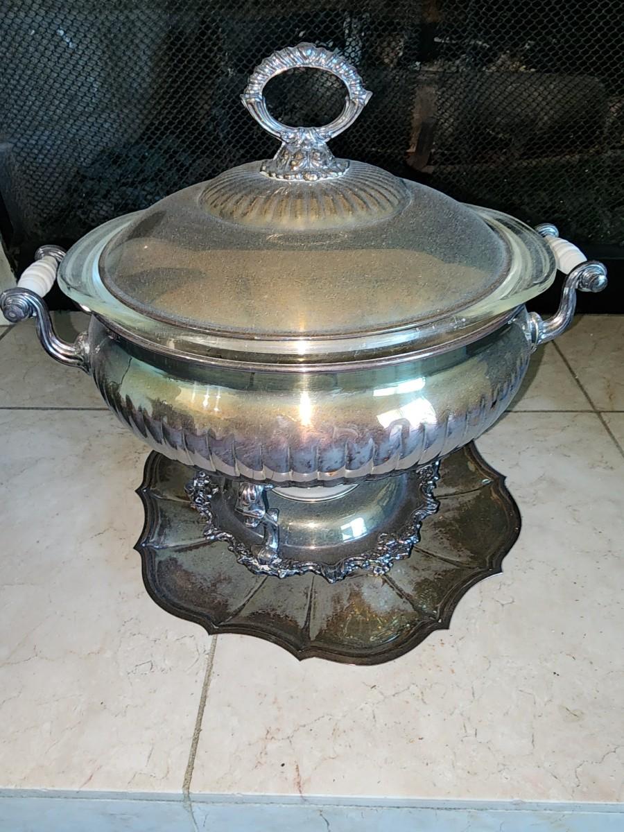 Silver plated chaffing dish with pyrex bowl