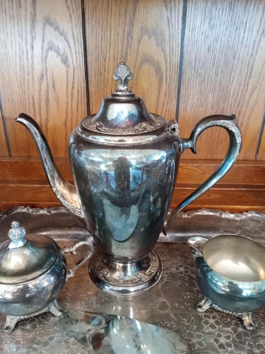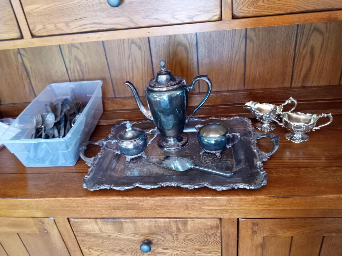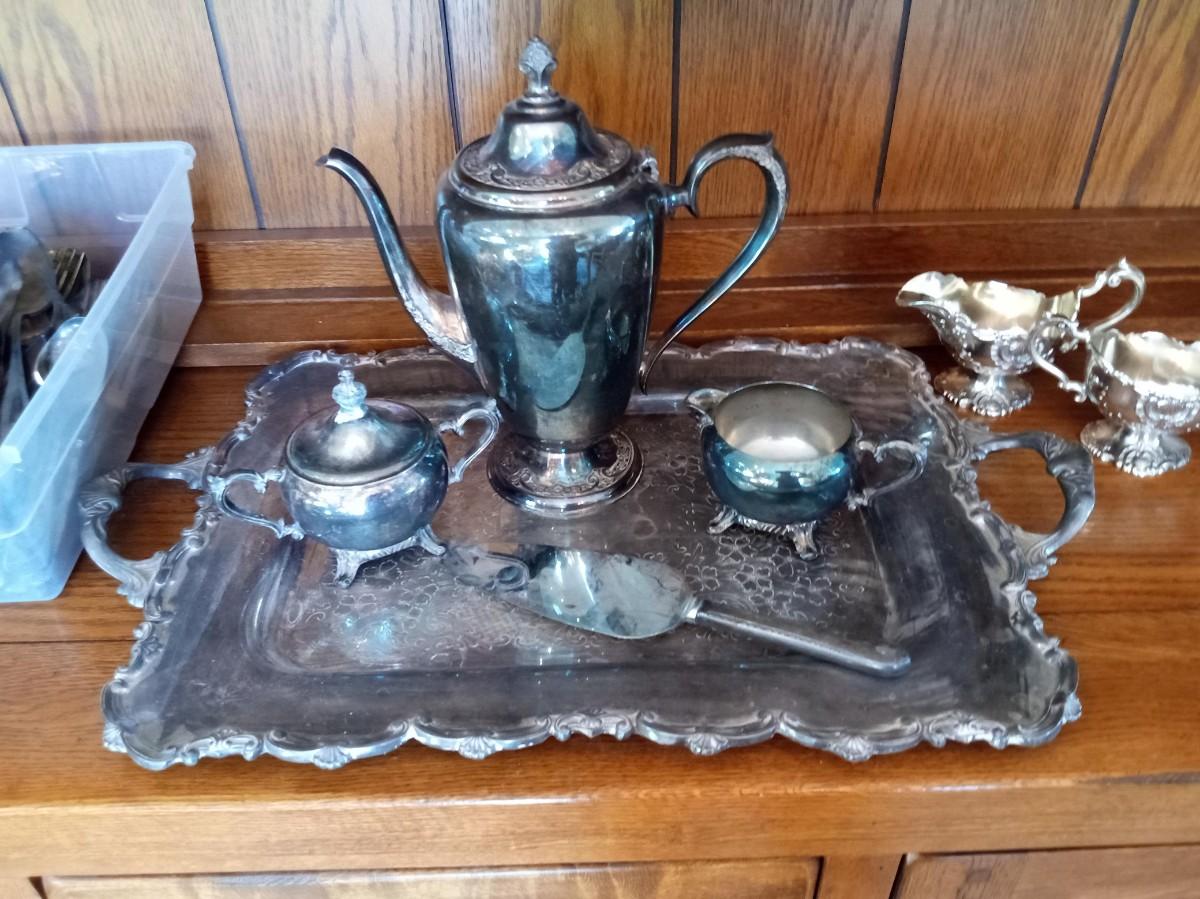SILVER PLATED COFFEE SERVICE AND AN ASSORTMENT OF FLATWARE