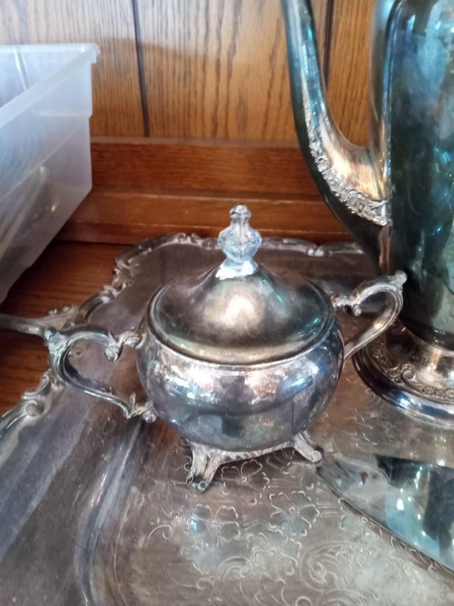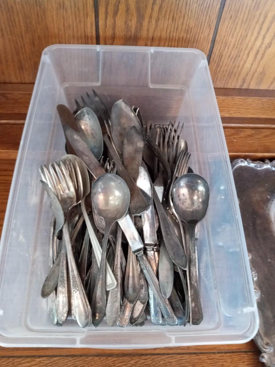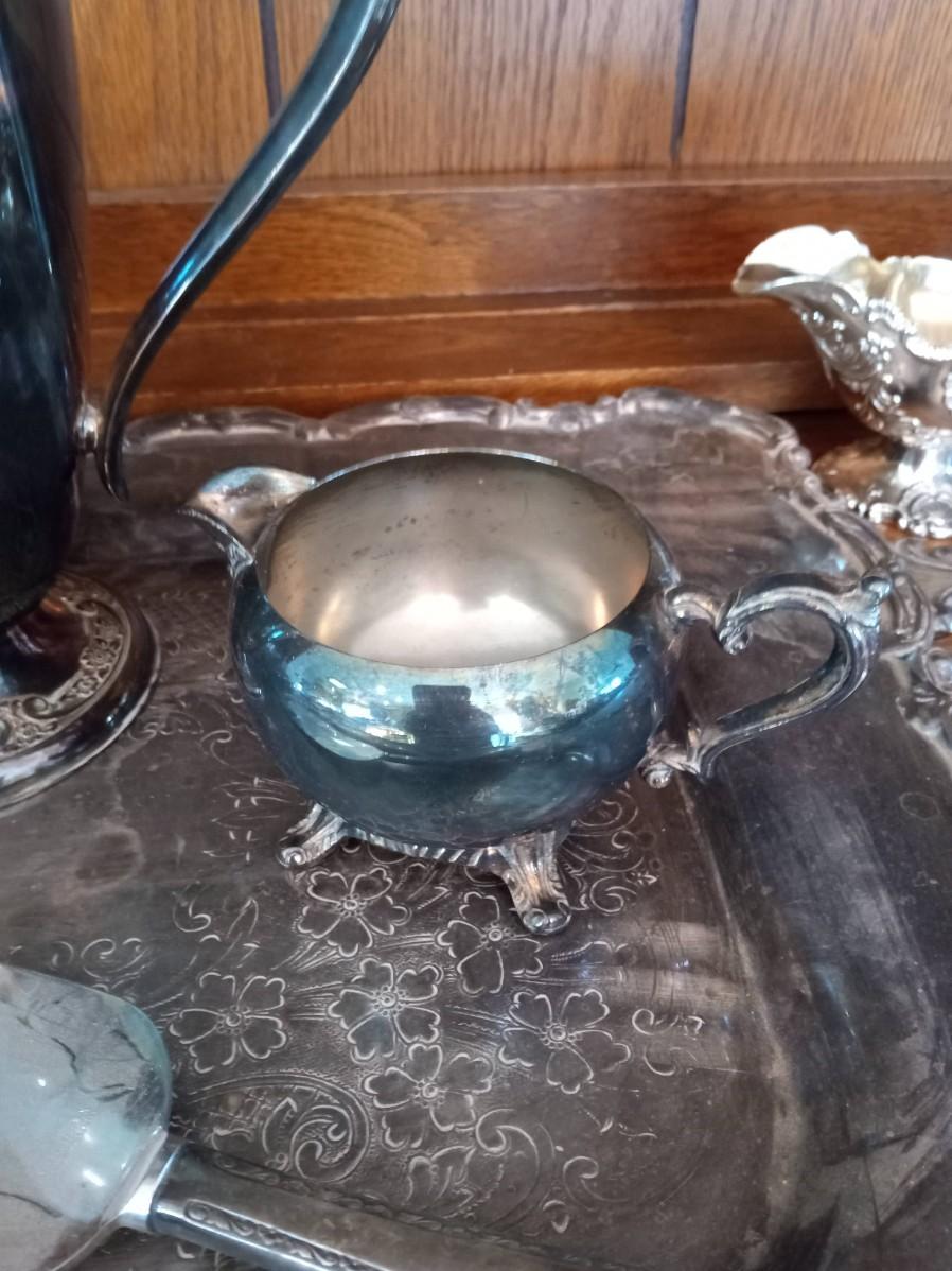 SILVER PLATED COFFEE SERVICE AND AN ASSORTMENT OF FLATWARE