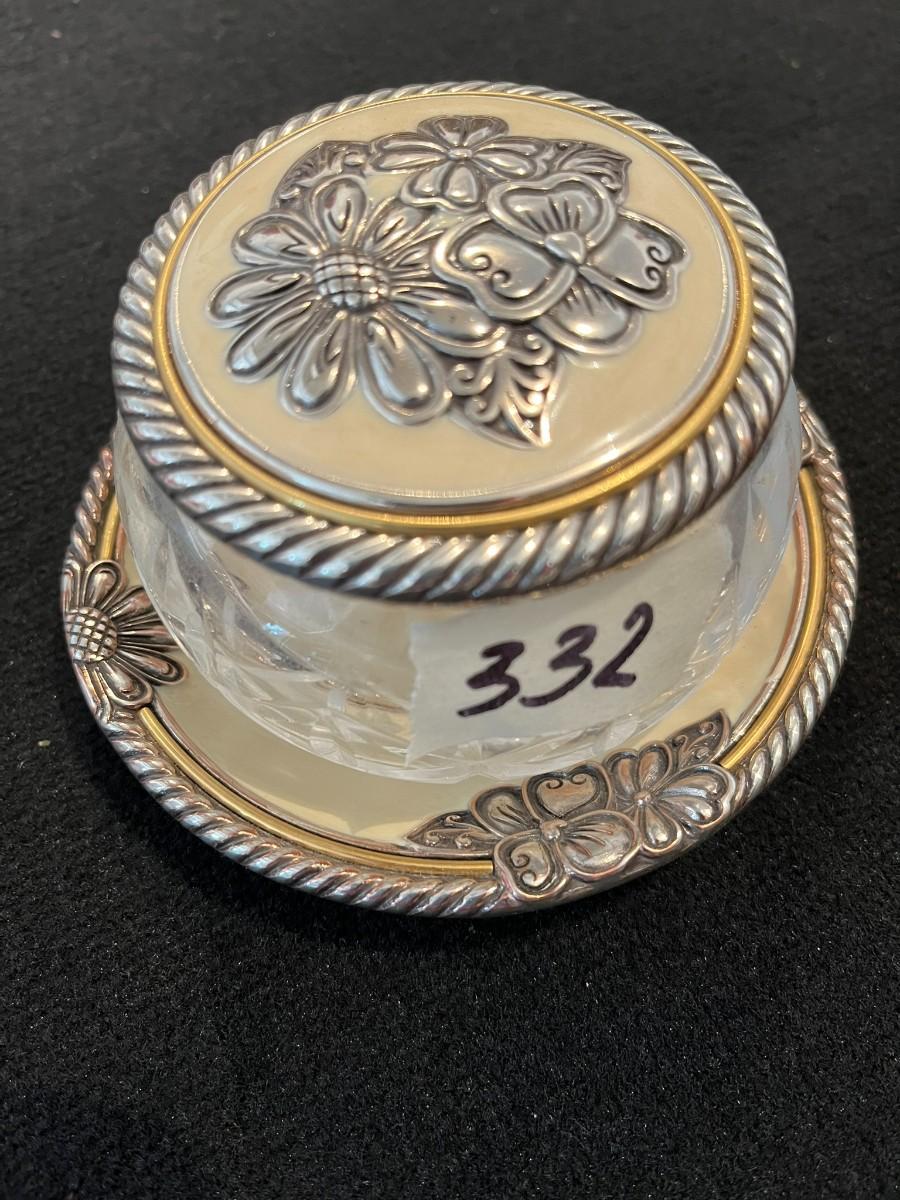 Silver Plated Metal Fancy Brighton Pretty Pearl Pressed Glass Made In Taiwan
