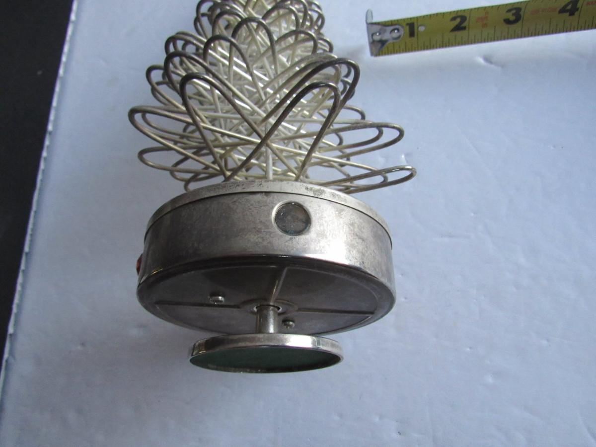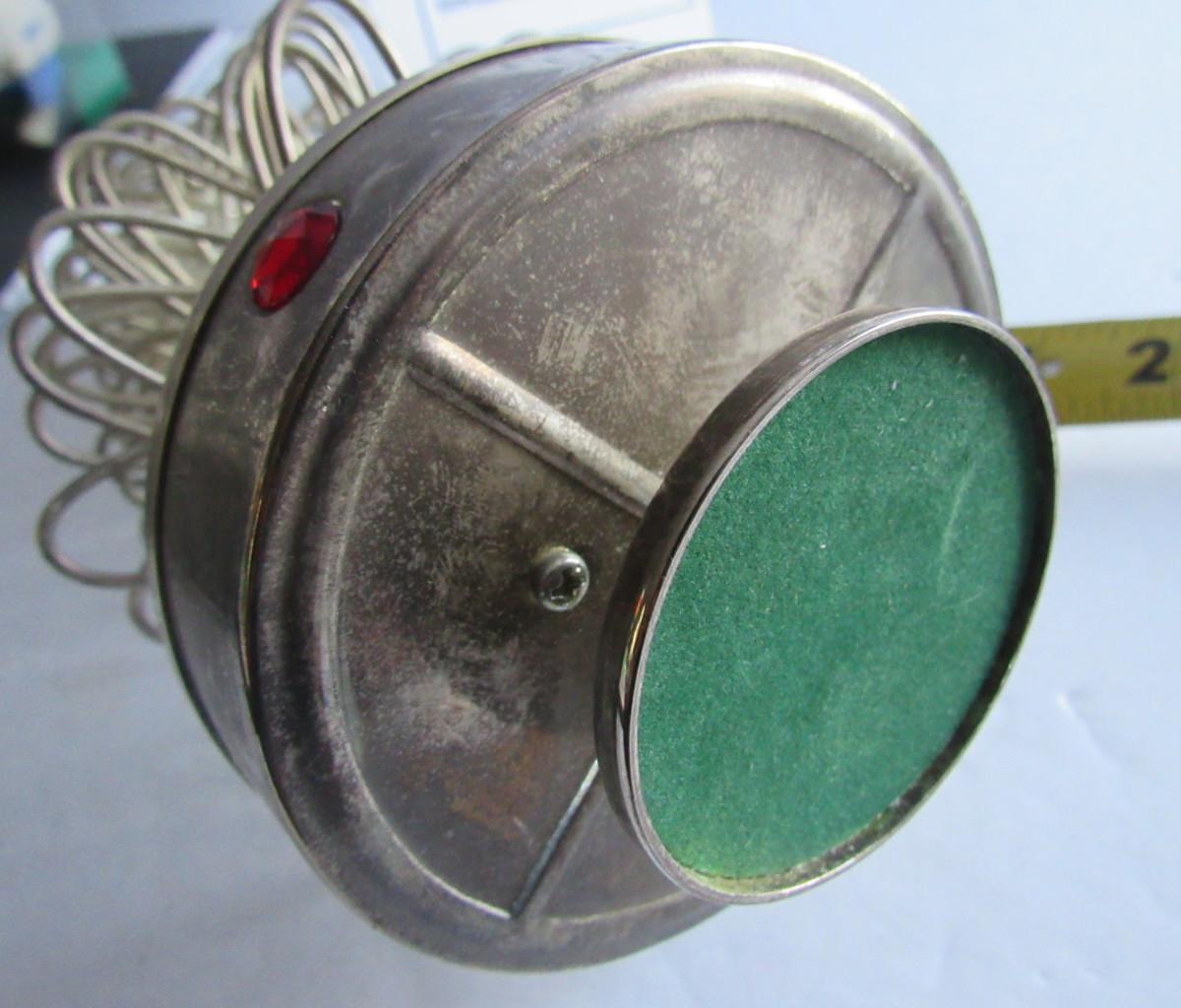 Missing one red rhinestones on base, other wise nice but tarnishing. Works. Shipping available at actual cost plus $5.00 per box handling and supply fee. See our terms for details. All sales final.