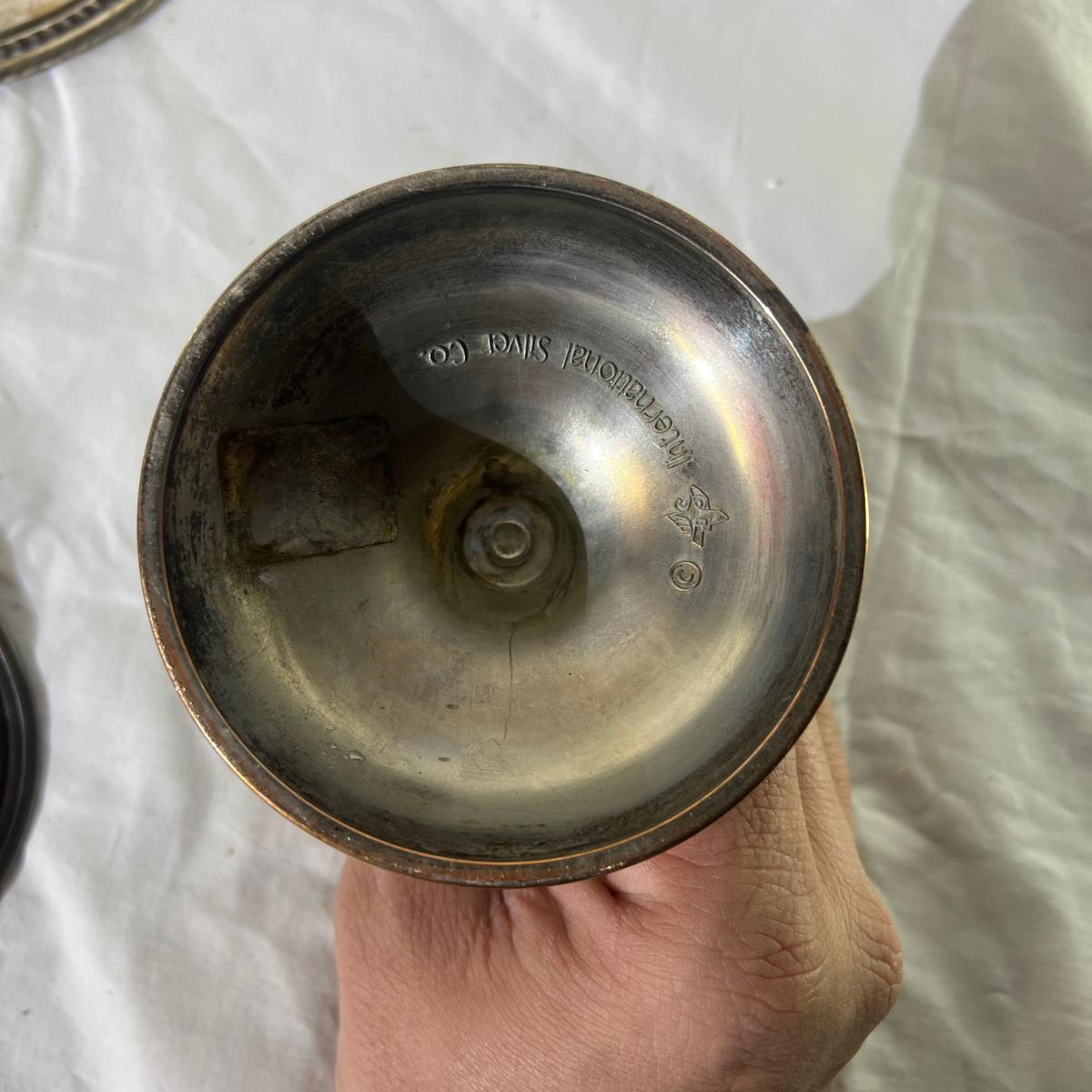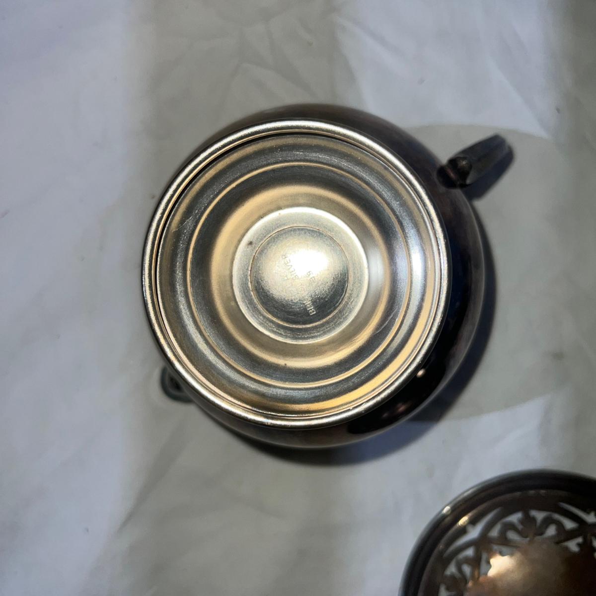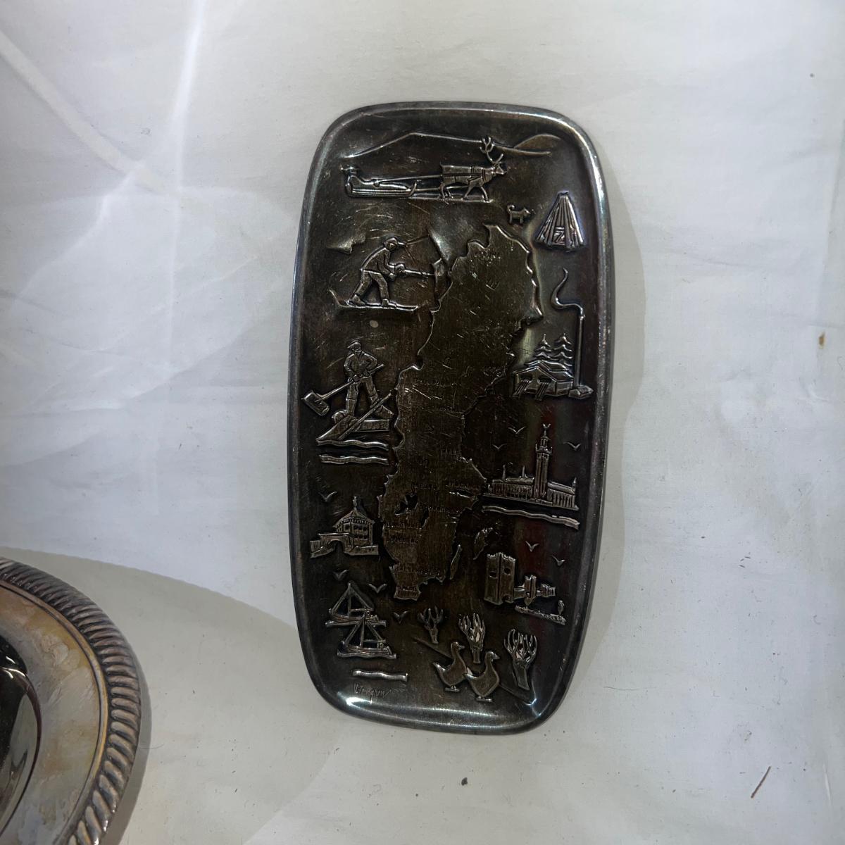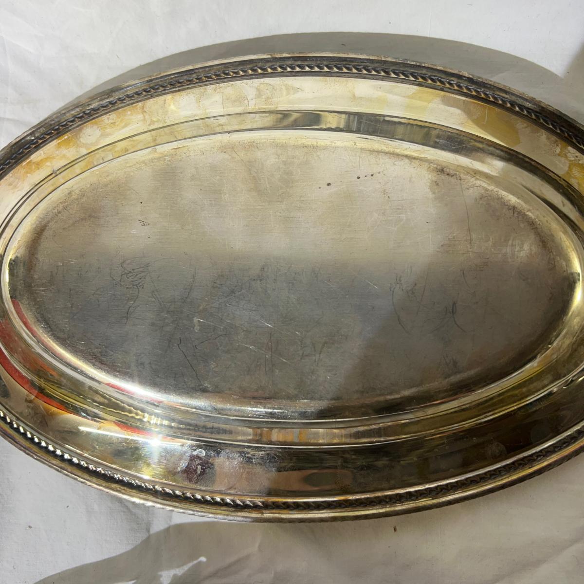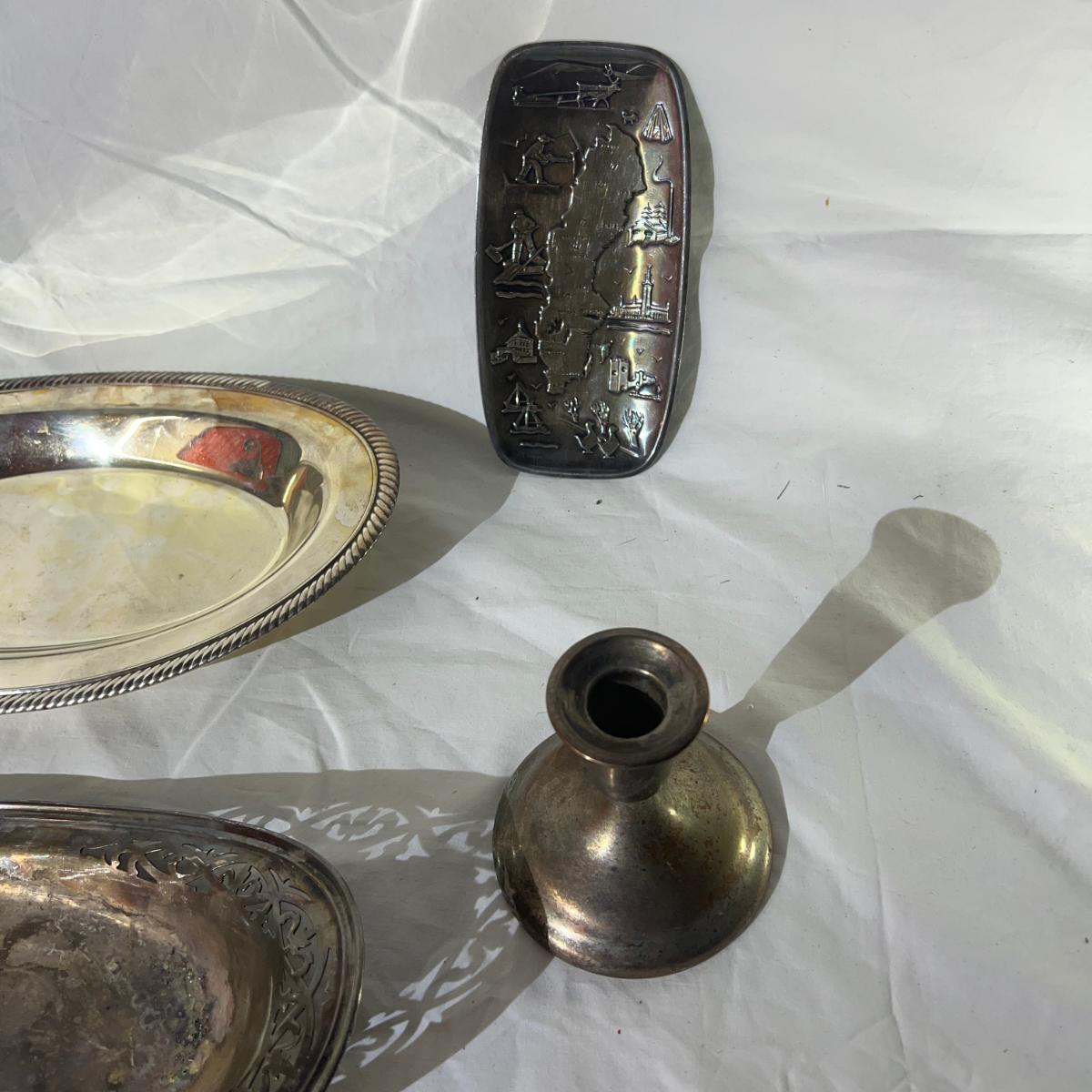 Silver plated Miscellaneous, two serving plates, decorative trinket tray, candlestick and cream pourer