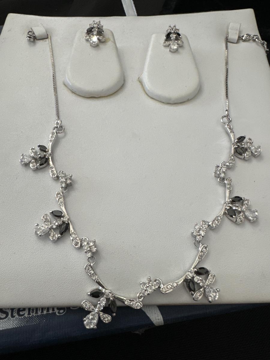 Silver plated necklace, and matching earrings