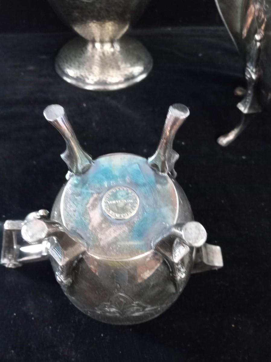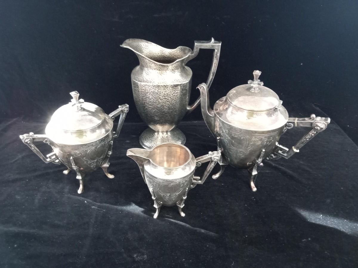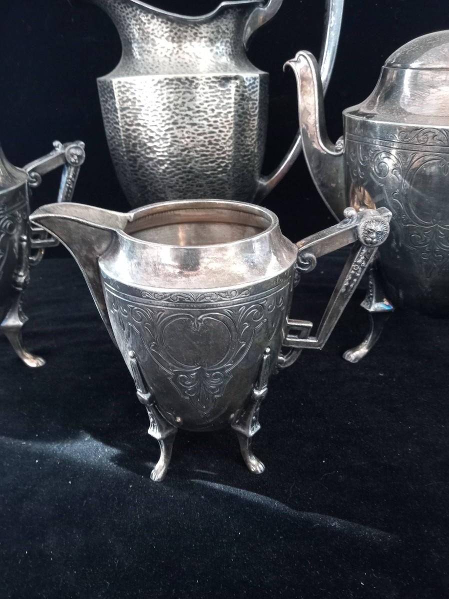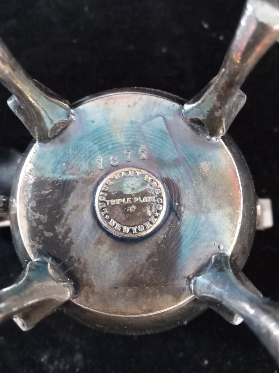 THE PITCHER DOES NOT MATCH THE OTHER PIECES IT IS MADE BY WM MOUNTS THE OTHER PIECES ARE MADE BY LUCIUS HART MFG CO NEW YORK